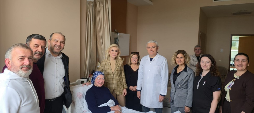 Ziyarete AK Parti İzmir İl Yönetim Kurulu Üyesi Mukaddes Çelik de eşlik ederken, Bursalı hastanedeki ilgilerinden dolayı Başhekim Cihan Arslan ve hastane yönetimine teşekkür etti.