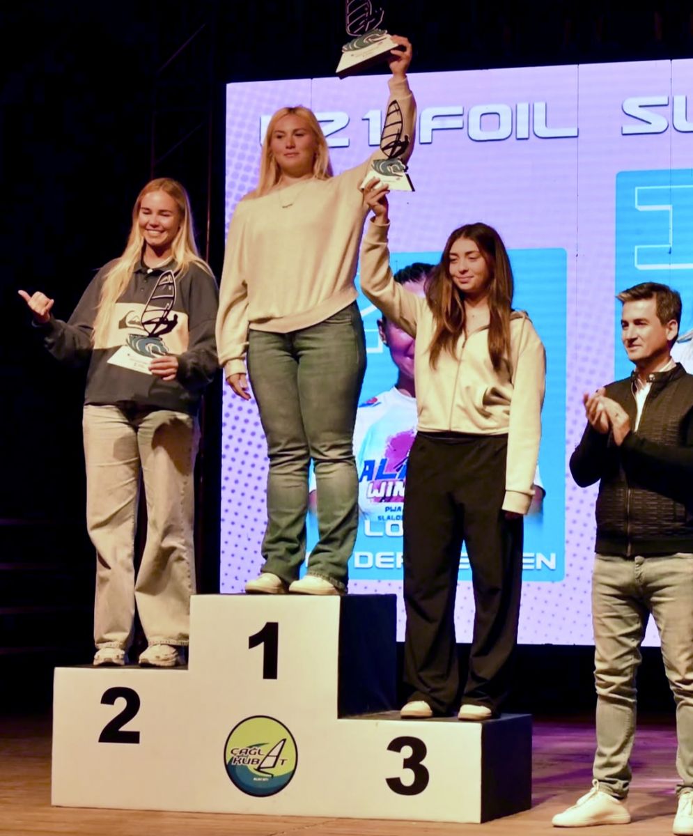 Türkiye Yelken Federasyonu, Çağla Kubat Windsurf Yelken Kulübü ve Çeşme Belediyesi iş birliği ile Signify ve AXA Sigorta sponsorluğunda düzenlenen Alaçatı Windfest 2025, PWA Youth & Junior Slalom Cup Şampiyonası ödül törenine; Çeşme Kaymakamı Mehmet Maraşlı, Çeşme Belediye Başkanı Lâl Denizli, TYF Başkanı Özlem Akdurak, Çeşme İlçe Gençlik ve Spor Müdürü Nuri Büyükateş, Çeşme Belediyesi Spor İşleri Müdürü Yavuz Yaşar, Alaçatı Turizm Derneği Başkanı Kerem Ünsal, sponsor firmaların temsilcileri, sporcular ve aileleri katıldı.