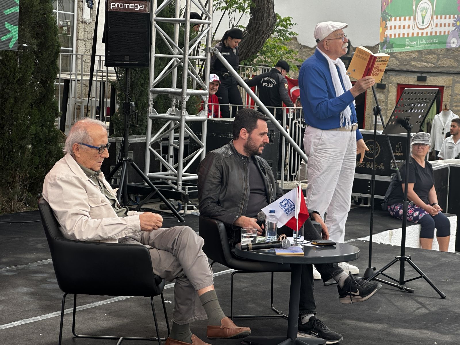 Alaçatı Cumhuriyet Meydanı’nı dolduran dinleyiciler, Ataol Behramoğlu ve Haluk Çetin’in “Hayatımız Güzeldir” kitabı üzerine gerçekleştirdiği samimi ve derinlikli söyleşiyi ilgiyle takip etti. Behramoğlu’nun hayata, aşka ve sanata dair düşüncelerini kendi sesinden dinleme fırsatı bulan katılımcılar, etkinliğe büyük ilgi gösterdi.