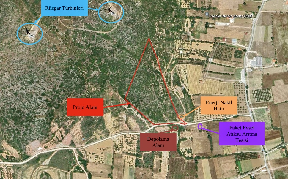Tesisin yapılacağı alan, Musalla Mahallesi’ne yaklaşık 3 km, Ovacık ve Çiftlik mahallelerine ise 1,3 km uzaklıkta bulunuyor. Çevresinde zeytinlikler, enerji nakil hattı, rüzgar türbinleri, mevcut paket arıtma tesisi ve depolama alanı yer alıyor. Projeye ulaşım, Musalla Mahallesi üzerinden 2,4 km’si asfalt, 0,2 km’si stabilize olmak üzere toplam 2,6 km’lik bir yol ile sağlanıyor.