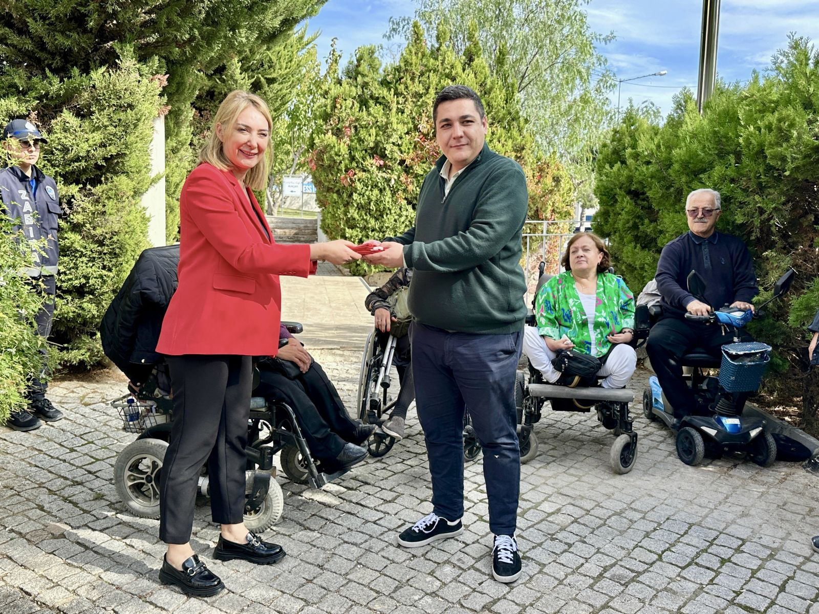 Törende Çeşme Belediyesi Başkan Yardımcısı Emrecan Durmaz, İzmir Büyükşehir Belediyesi Sosyal Hizmetler Dairesi Başkanı Ela Hızlı, Engelli Çalışmaları Şube Müdürü Arzu Ütaş ve engelli yurttaşlar yer aldı.