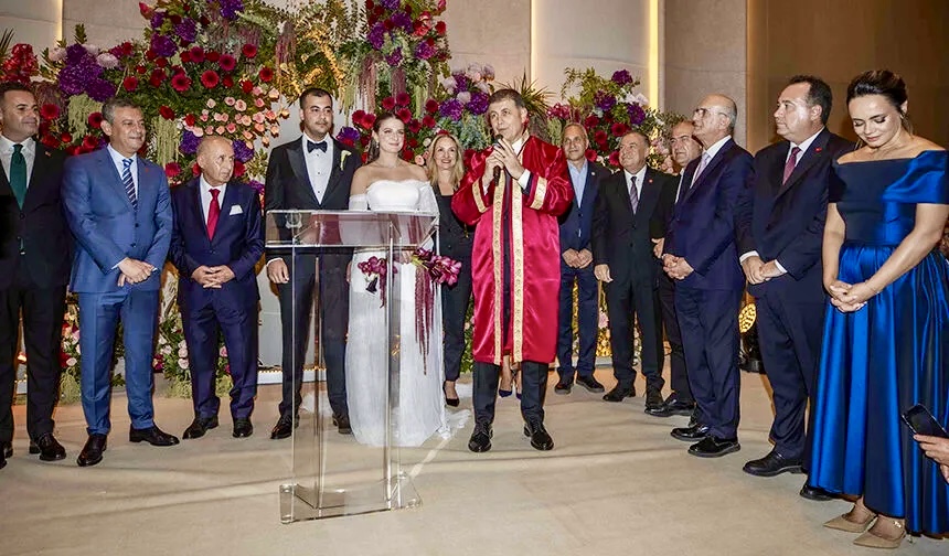 Başkan Tugay, kızı Defne’nin nikâhını hem baba hem de belediye başkanı sıfatıyla kıydı. “Başkan mıyım, baba mıyım?” sözleri salonda neşeli anlar yaşattı.