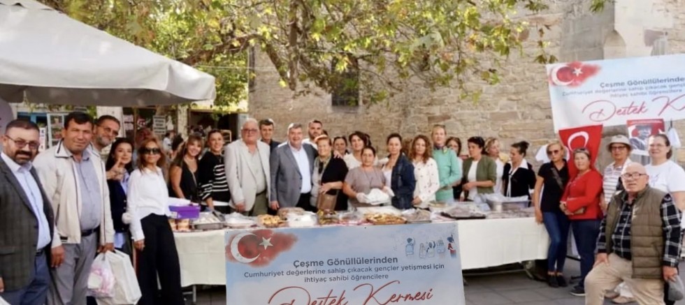 Çeşme CHP İlçe yönetimi, kadın kolları ve gönüllülerin katılımı ile Çeşme çarşısında bulunan Çınaraltı’nda ihtiyaç sahibi öğrenciler için eğitime destek kermesi düzenlendi.