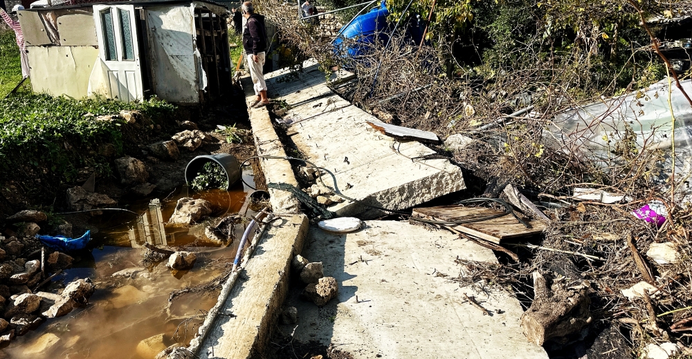 Çeşme genelinde etkili olan şiddetli sağanak yağış ve gece yarısı aniden kopan hortum, büyük yıkıma yol açtı. Çeşme Çakabey Mahallesi Sarnıç Mevkiinde, Bahçe ve Süs Bitkileri Peyzaj Üreticisi Mehmet Sait Yıldız, felaketin ardından üretim alanlarının ve süs bitkileri serasının kullanılamaz hâle geldiğini belirtti.