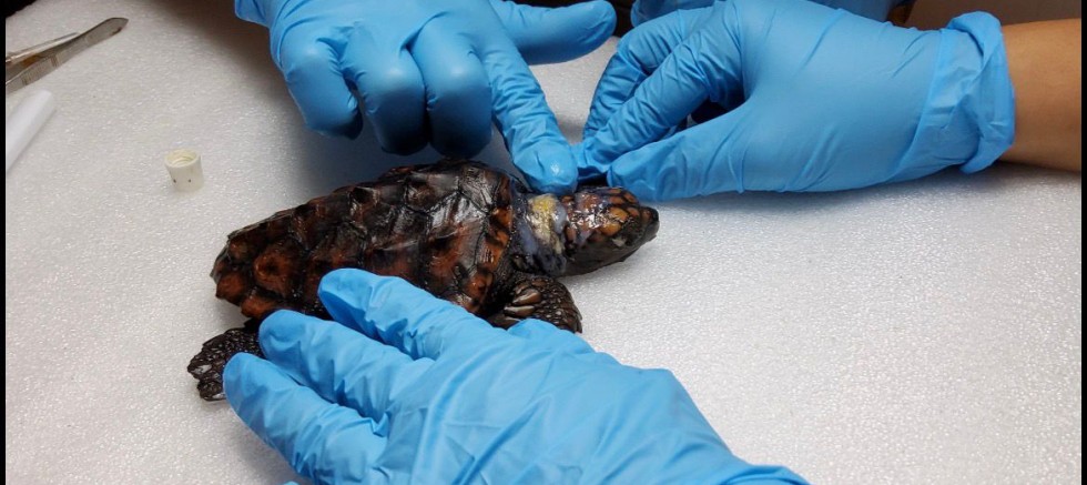 “Merkezimize ulaştığında bitkin olan yavru caretta carettanın bugün karides parçalarıyla beslenmesi gerçekleştirilmiştir. Gözlerinde tespit edilen enfeksiyon nedeniyle antibiyotikli göz damlası tedavisi uygulanmakta, vücut bütünlüğünü bozan yara bölgelerine antibiyotikli krem sürülmektedir. Ayrıca destekleyici tedavi kapsamında 0.3 cc izotonik, ringerli laktat ve neoton deri altı uygulaması yapılmıştır.”