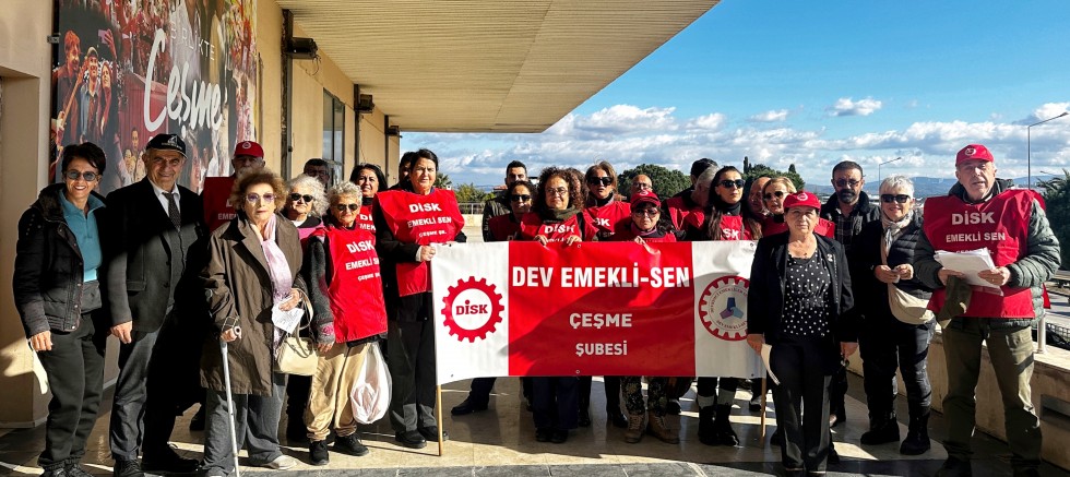 Basın açıklamasına Dev-Emekli-Sen Çeşme Temsilciliği Başkanı İbrahim Tuz, yönetim kurulu üyeleri, sendika üyeleri ve destek veren sivil toplum kuruluşlarının (STK) temsilcileri katıldı.