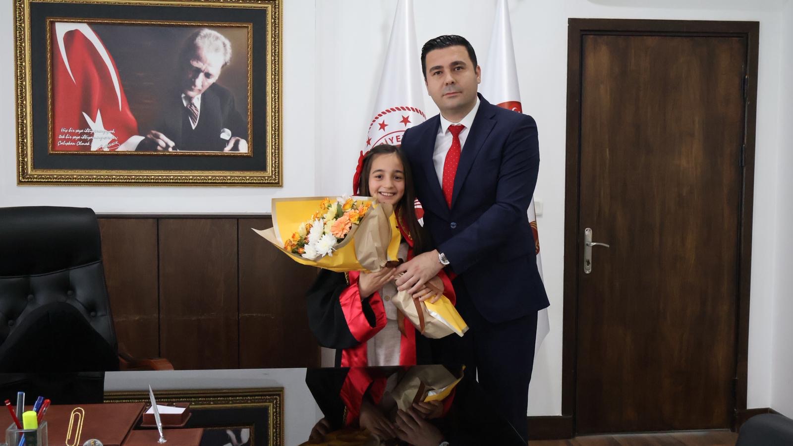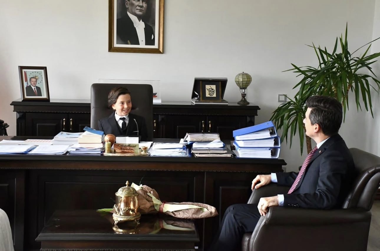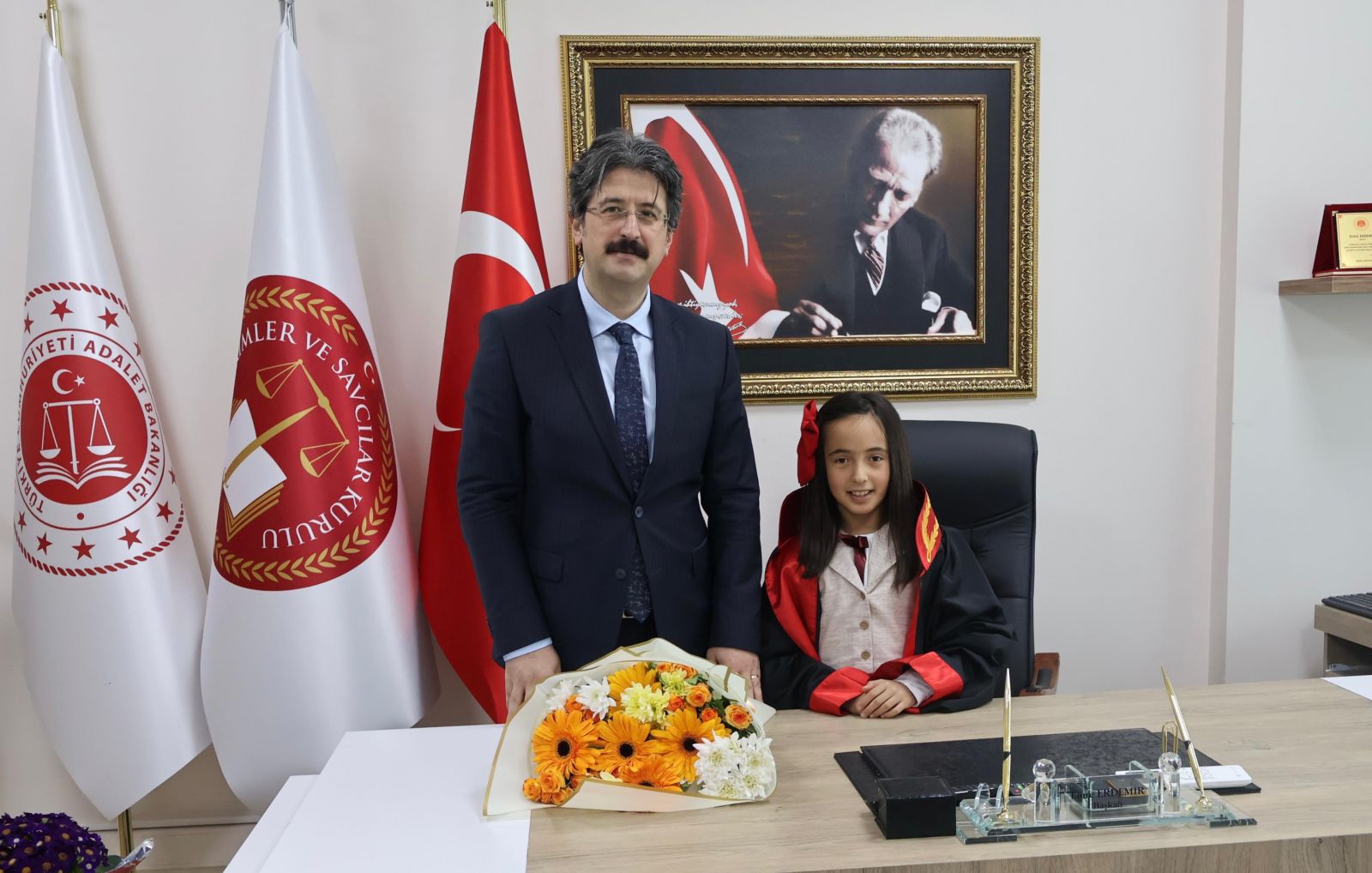 Kutlamalar kapsamında Süleyman Sami Sarı İlkokulu öğrencisi Emine Defne Ersen, İlçe Millî Eğitim Müdürü Şahan Çöker’in makamına oturdu. Eğitime dair düşüncelerini ve projelerini paylaşan Defne, çocukların bakış açısını ortaya koydu.