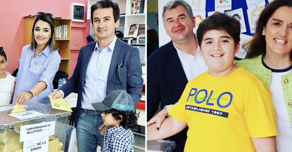 Çeşme Kaymakamı Mehmet Maraşlı ve eşi Arzu Güleryüz Maraşlı ile birlikte Çeşme İmam Hatip Ortaokulu 1007 nolu sandıkta oyunu kullanırken,