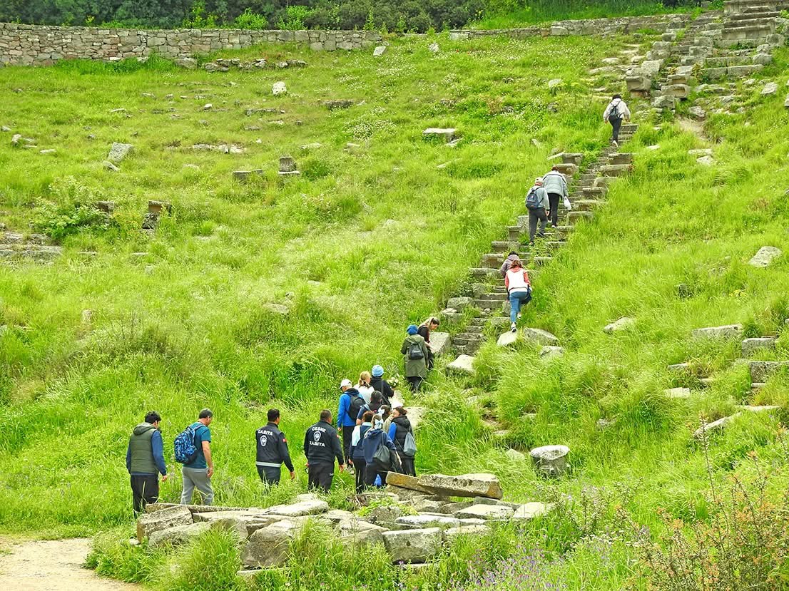 Erythrai’de yer alan antik tiyatroya tırmanan doğaseverler, zirvede bulunan Athena Tapınağı ve Matrone Kilisesi kalıntılarını da gezerek kültürel bir keşif gerçekleştirdi. Katılımcılar, hem spor yapmanın hem de tarihi bir yolculuğa çıkmanın keyfini yaşadı.