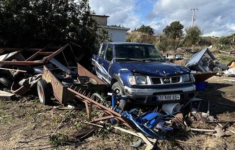 Çeşme’de dün gece başlayan ve sabah saatlerine kadar aralıksız süren şiddetli sağanak, Ovacık Mahallesi Azmak Mevkii’ni etkisi altına aldı. Gece çıkan hortum nedeniyle konteynırda kalan