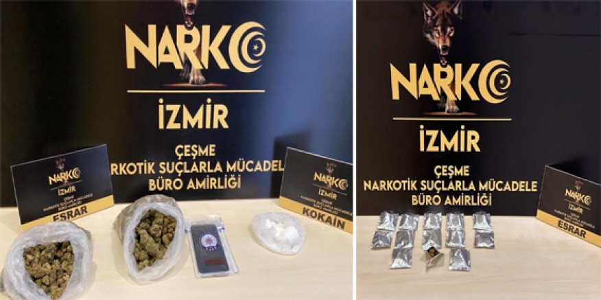Çeşme İlçe Emniyet Müdürlüğü Narkotik ekiplerinin yaptığı çalışmalarda bir ev ve bir arabada yapılan aramada Kokain ve esrar ele geçirildi.