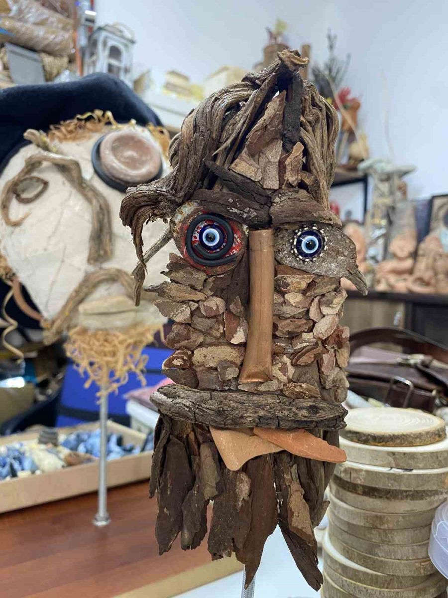 “Uzun Sokak’ta hediyelik eşya ve bijuteri üzerine bir dükkânım vardı. Ticaretle uğraşırken, dükkânımın bir köşesinde sanattan hiç kopmadım. Yaklaşık 50 yıl önce karikatürle başlayan serüvenime zamanla heykeli de ekledim. Seramik çamuruyla heykeller yapmaya başladım ancak bu süreç benim için oldukça zorluydu. Heykele yoğunlaştığım anda müşteri geliyor, çamurlu ellerimi bırakıp satışla ilgileniyor, ardından tekrar çalışmama dönüyordum. Daha sonra ağabeyimin önerisiyle Alaçatı Yağhane’de mozaik kursuna katıldım ve yaklaşık 1,5 yıl eğitim aldım. Bu süreç, doğada gördüğüm ve atık olarak değerlendirilen malzemelerle de üretim yapabileceğimi fark etmemi sağladı.”