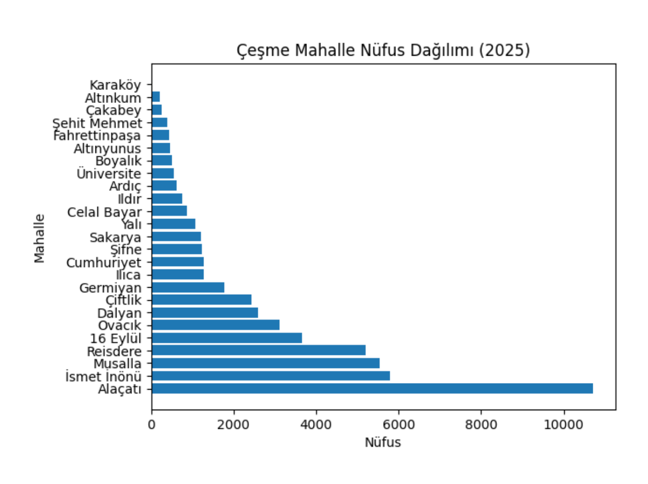 Mahalle bazlı dağılımda Alaçatı Mahallesi, 10 bin 715 kişilik nüfusuyla ilçenin açık ara en kalabalık bölgesi olmaya devam ediyor. Alaçatı’yı sırasıyla İsmet İnönü, Musalla ve Reisdere mahalleleri takip ediyor.