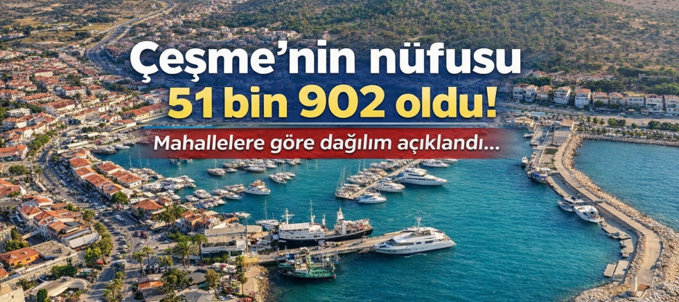 TÜİK tarafından paylaşılan 31 Aralık 2025 tarihli verilere göre, Çeşme’nin toplam nüfusu 51 bin 902 olarak kayıtlara geçti. 2024 yılında 50 bin 828 olan ilçe nüfusu, bir yıl içerisinde 1.074 kişi artış gösterdi.