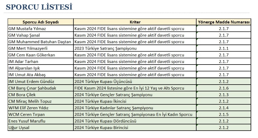 Çeşme Satranç Eğitim Merkezi’nin yetiştirdiği başarılı oyuncular, şampiyonada ilçemizi temsil edecek. Uluslararası Usta (IM) Alparslan Işık, Türkiye Satranç Federasyonu’nun davetlisi olarak şampiyonada mücadele edecek. Çeşme Belediyespor oyuncusu olan Alparslan, ilçemizin en üst düzey satranç sporcusu olarak dikkat çekiyor.