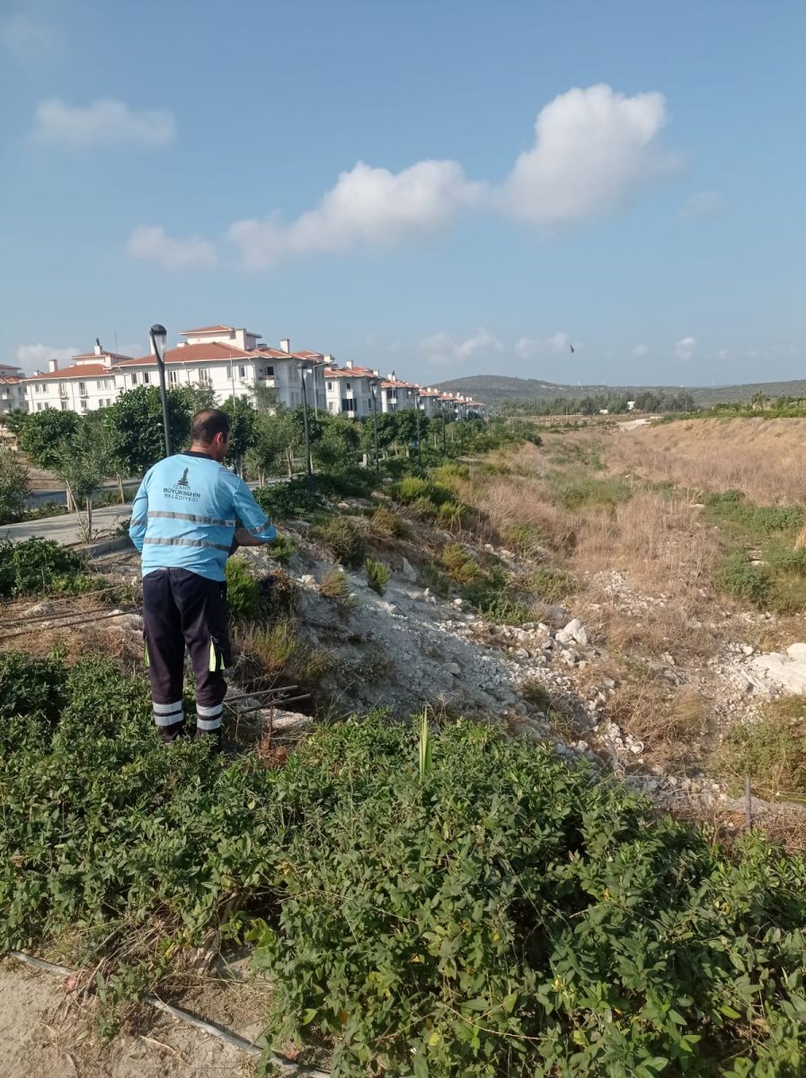 Ekipler, TOKİ konutlarının bulunduğu derenin etrafını, park/ bahçeleri ve evlerin bodrum katlarını içerden ve dışardan ilaçlama yaparak temizledi.