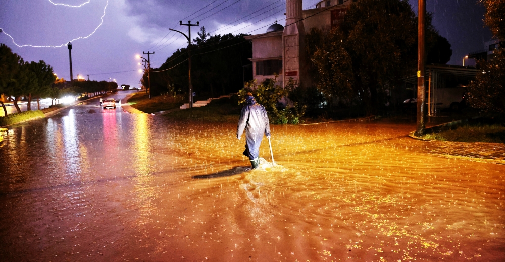 Meteoroloji uzmanlarının günlerdir uyardığı Akdeniz kökenli siklon, Çeşme’den giriş yaptı. Gök gürültülü sağanak yağış başta Çeşme Çarşısı ve Alaçatı olmak üzere birçok mahallede su baskınlarına yol açtı. Cadde ve sokaklarda oluşan yoğun su birikintileri