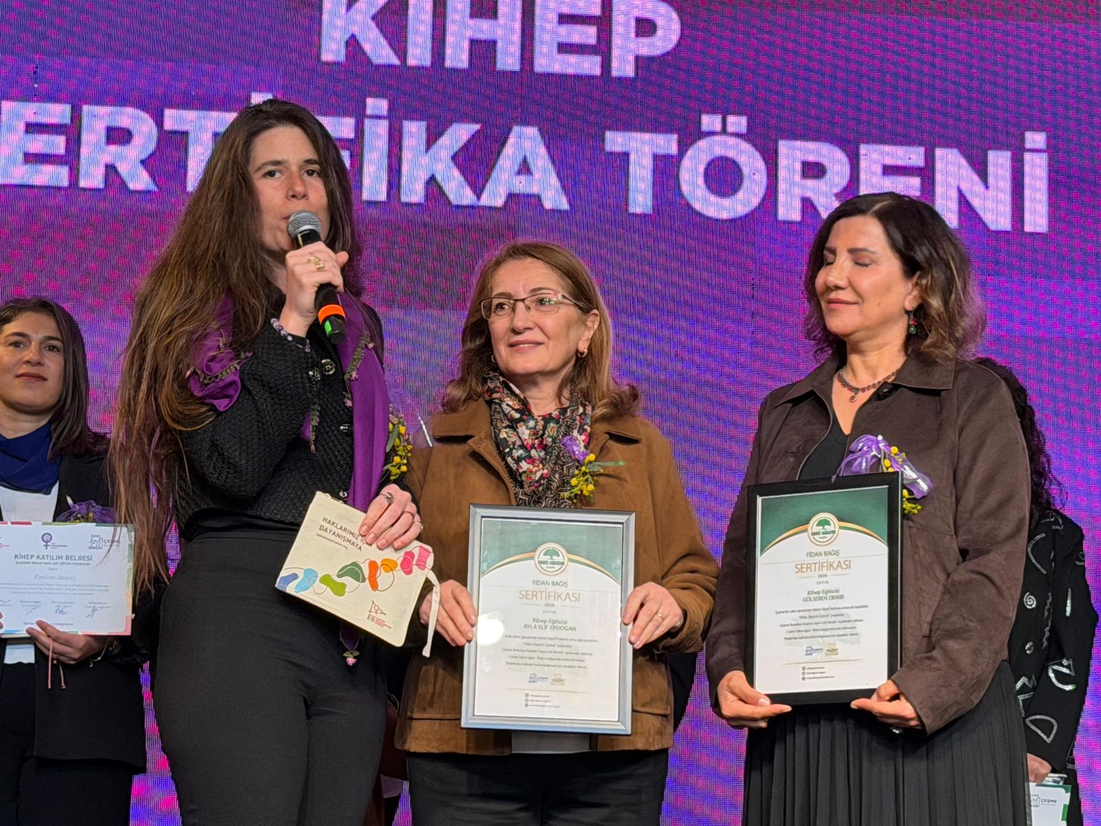 Konuşmaların ardından Çeşme Belediye Başkanı Lal Denizli, KİHEP eğitimini tamamlayan kadınlardan; Aylin Çoksoyluer, Aysu Dilek Öksüz, Ayşe Kırındı, Deniz Muyoğlu, Dilek Cangur, Derya Efdal, Eda Azır, Ebru Mola, Esra Yıldız, Fatoş Akder, Kübra Arslan, Melis Baykan, Nurdan Tavus, Nurperi Yanık, Özlem Erler, Perihan Atasoy, Sahra Baydar, Selda Nur, Sinem Tetik, Şenay Tataroğlu, Ümran Güleç, Nursemin Aycu ve Elif Tokay’a sertifikalarını takdim etti.