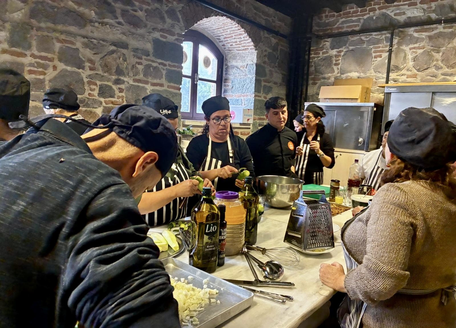 Çeşmeli Şef Rıfat Yurttaş, İzmir Büyükşehir Belediyesi’nin pastacı çıraklığı kursundan mezun olan işitme engelli kursiyerlerle bir araya gelerek Ege mutfağına özgü meze ve zeytinyağlı yemekler hazırladı. İşaret dili çevirmenleri aracılığıyla kursiyerlerle iletişim kuran Yurttaş, yemek yapmanın inceliklerini paylaştı.