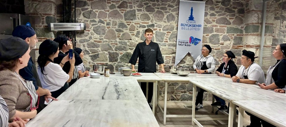 İzmir Büyükşehir Belediyesi Meslek Fabrikası’nın sağır ve işitme engelli kursiyerlere yönelik pastacı çıraklığı programından mezun olan kursiyerler, Çeşme’de restoranı bulunan ve sosyal medyada paylaştığı özel tariflerle tanınan Şef Rıfat Yurttaş ile buluştu. Engelli Çalışmaları Şube Müdürlüğü’nde görevli işaret dili çevirmenleri Özlem Özer ve Melek Uslular’ın desteğiyle gerçekleştirilen etkinlikte Yurttaş, katılımcılarla birlikte Ege mutfağına ait mezeler ve zeytinyağlılar hazırladı.
