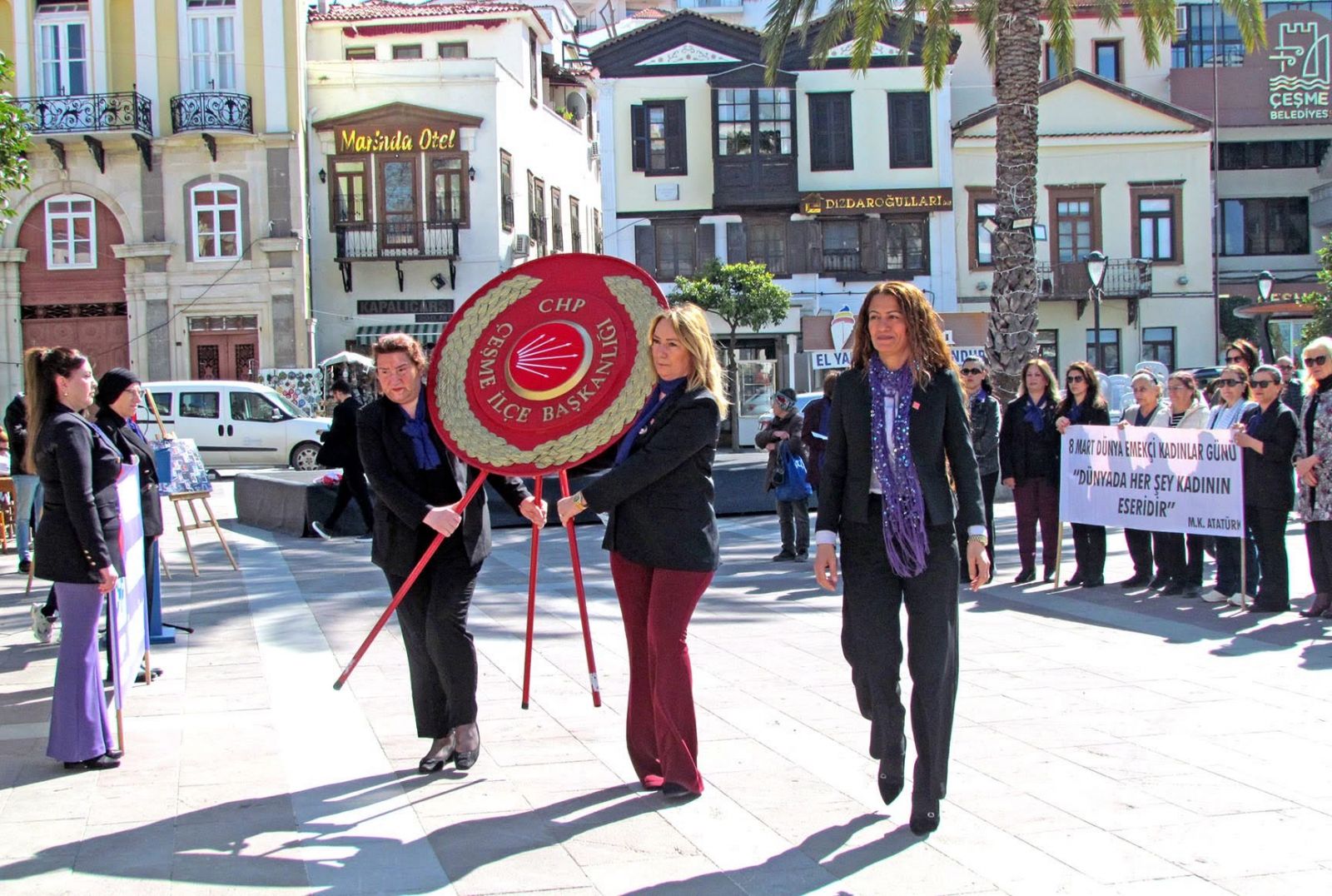 CHP Çeşme Kadın Kolları tarafından 8 Mart Dünya Emekçi Kadınlar Günü kapsamında Çeşme Cumhuriyet Meydanı’nda düzenlenen etkinlikte konuşan CHP Çeşme Kadın Kolları Başkanı Derya Atalan, kadınların örgütlü mücadelesine vurgu yaparak, “CHP iktidarı kadınların iktidarı olacak” dedi.