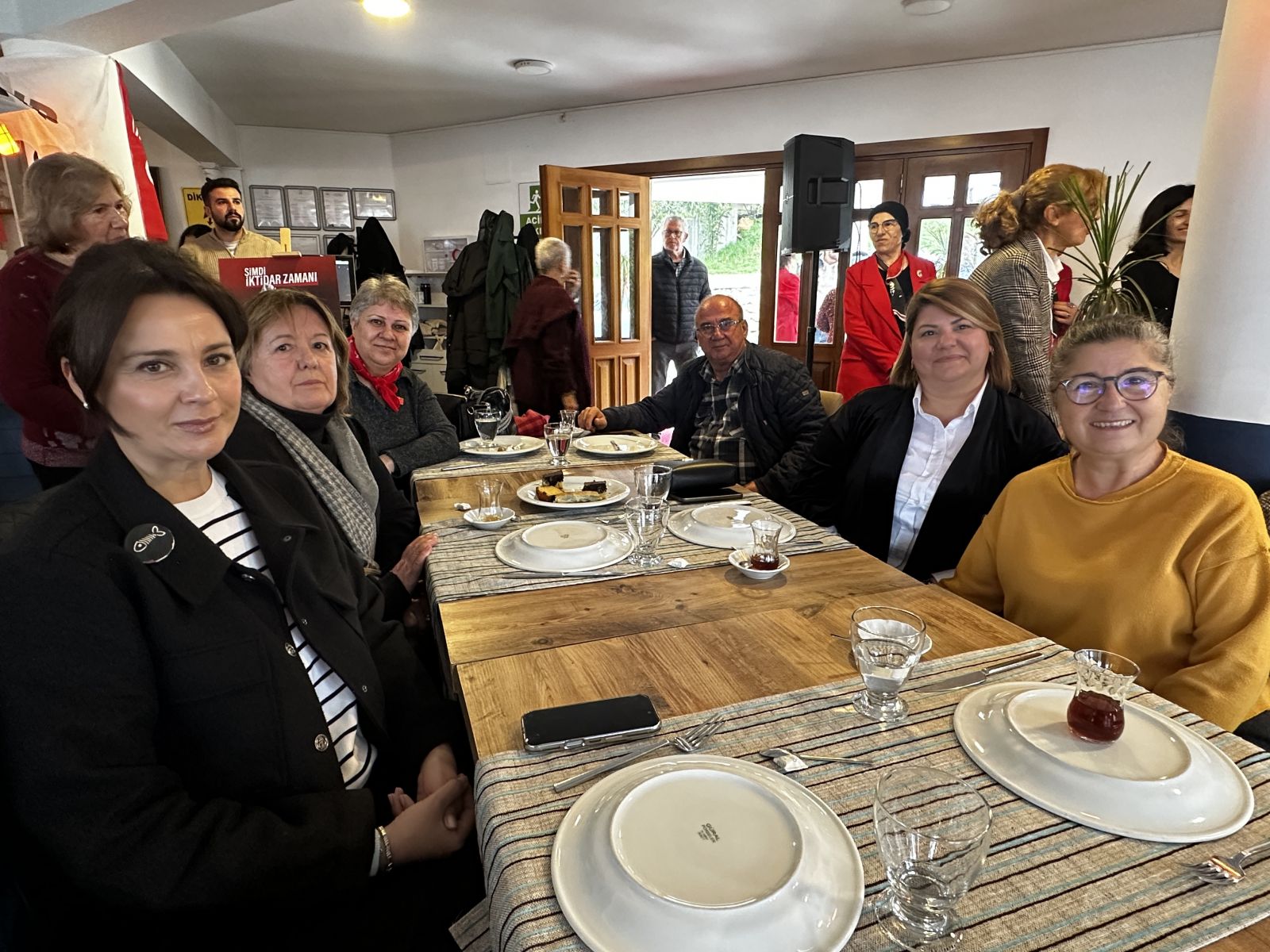 CHP Çeşme Kadın Kolları Başkanı Derya Atalan ve yönetiminin ev sahipliğinde düzenlenen toplantıya; Çeşme Belediye Başkan Yardımcısı Banu Ayhan, CHP İzmir İl Kadın Kolları Başkan Yardımcıları Esengül Kaleli ve Kübra Kublay Filiz, CHP Narlıdere Kadın Kolları Başkanı Zeynep Yıldırım, ilçe yönetimi, önceki dönem meclis üyeleri, kadın kolları başkanları, dernek üyeleri ve gönüllü kadınlar katıldı.