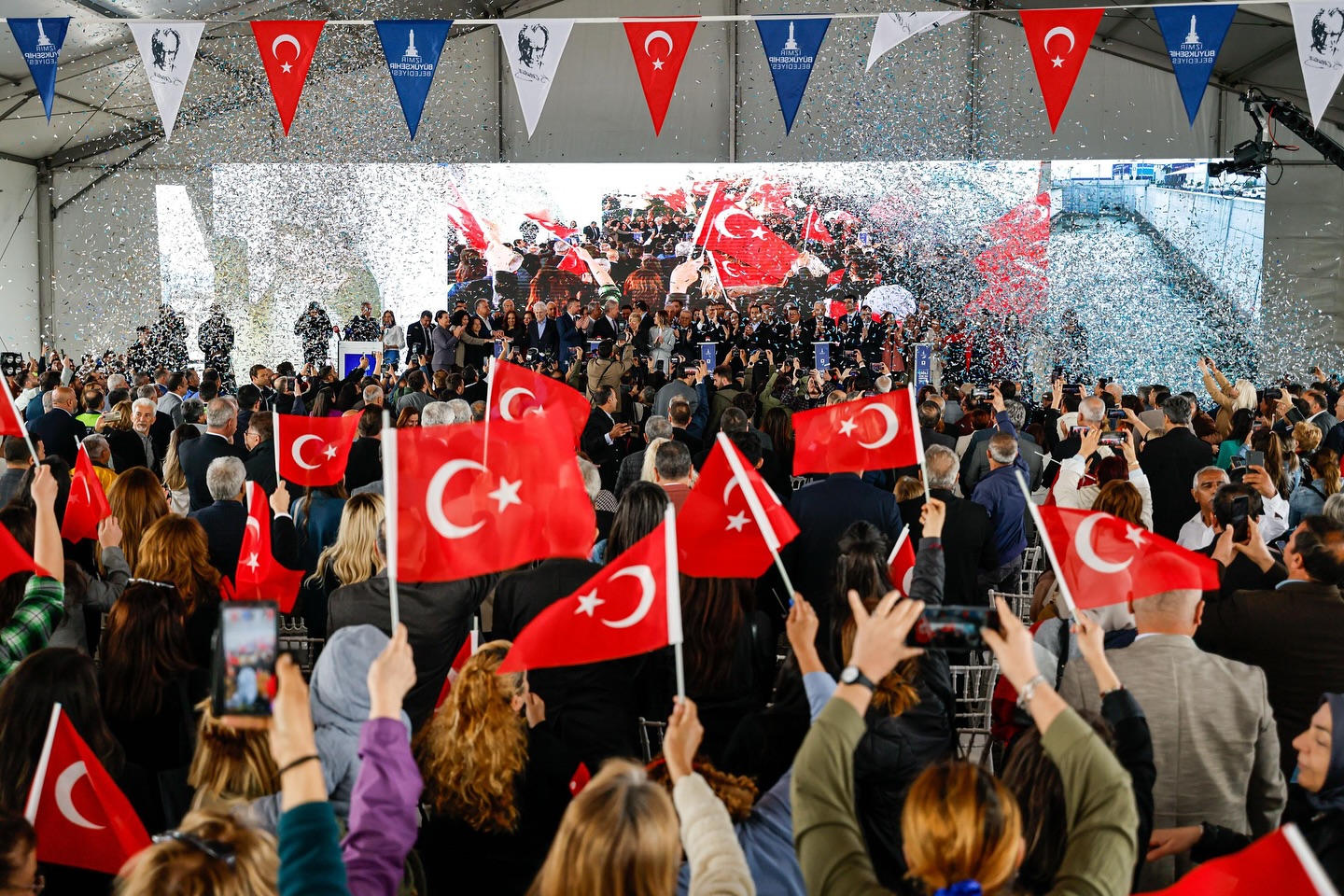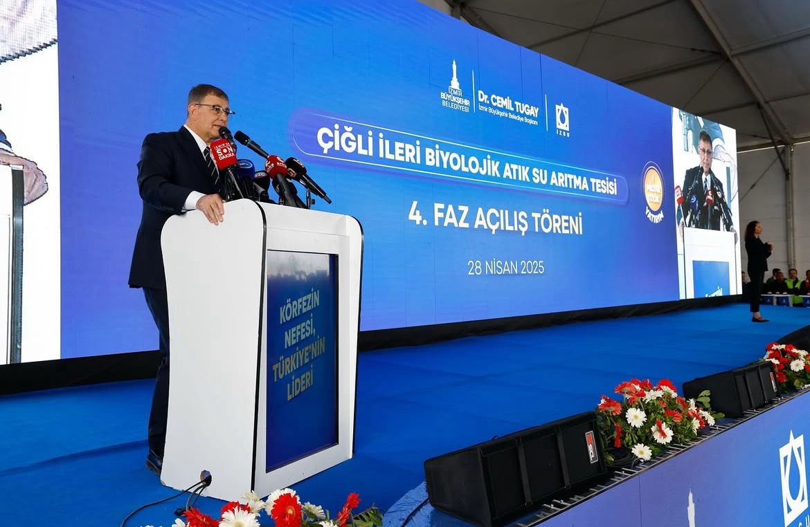 Başkan Cemil Tugay törende, “Körfez temizlenene kadar durmayacağız. İş yapan biz olacağız” dedi. Tugay, siyasi baskılara da değinerek İSKİ yöneticilerine ve tutuklu belediye başkanlarına destek mesajı gönderdi.