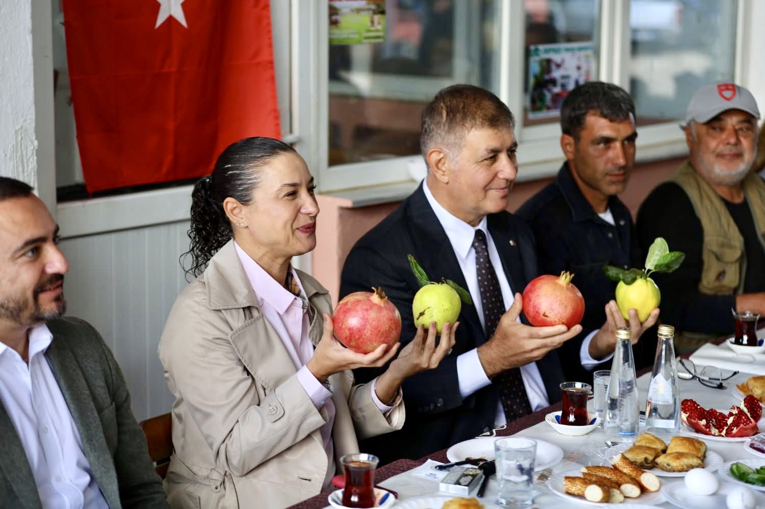Nar sezonunun açılışında üreticilerle bir araya gelen İzmir Büyükşehir Belediye Başkanı Cemil Tugay, Selçuk’un meyve üretimindeki potansiyeline dikkat çekerek şu ifadeleri kullandı: