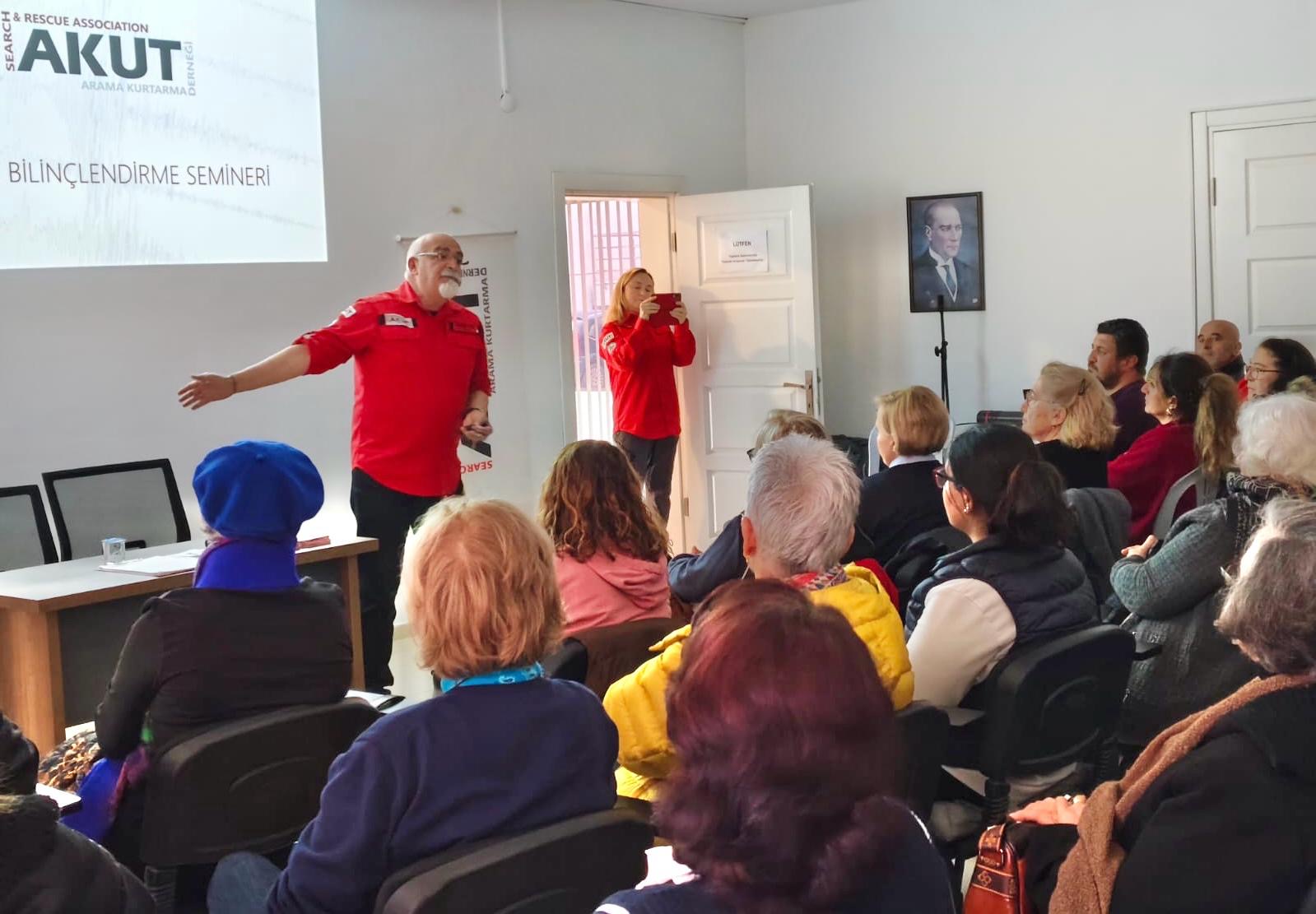 Çeşme’de, afetlere karşı bilinçlenme çalışmalarına bir yenisi daha eklendi. Çeşme Kent Konseyi Kadın Meclisi ve AKUT Yarımada ekibinin iş birliğiyle düzenlenen “İlçemizi Afetlere Hazırlayalım” semineri, geniş katılımla gerçekleştirildi. Seminere, Kadın Meclisi üyeleri ve çok sayıda Çeşmeli katılım gösterdi.