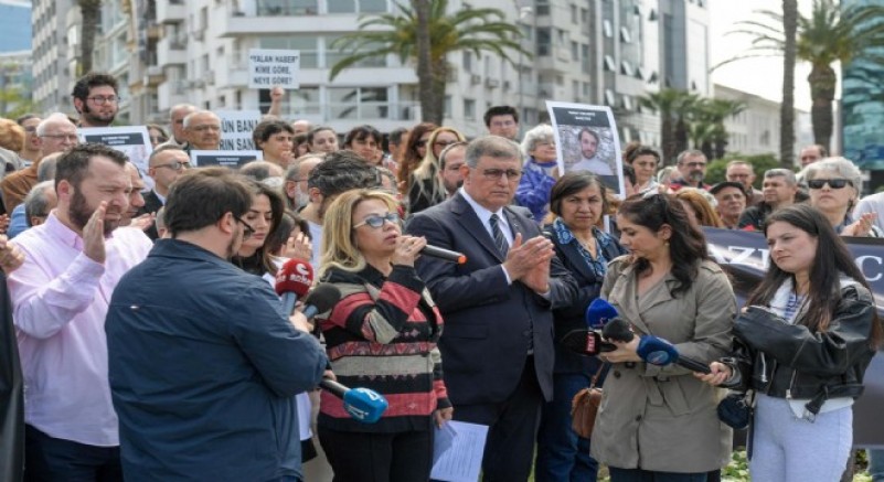 Basın açıklamasında Türkiye Gazeteciler Sendikası İzmir Şubesi Başkanı Nil Kahramanoğlu, BAMAD Genel Başkanı Ümit Kartal ve İzmirli gazeteciler de meslektaşlarının uğradığı haksızlığı eleştirdi.