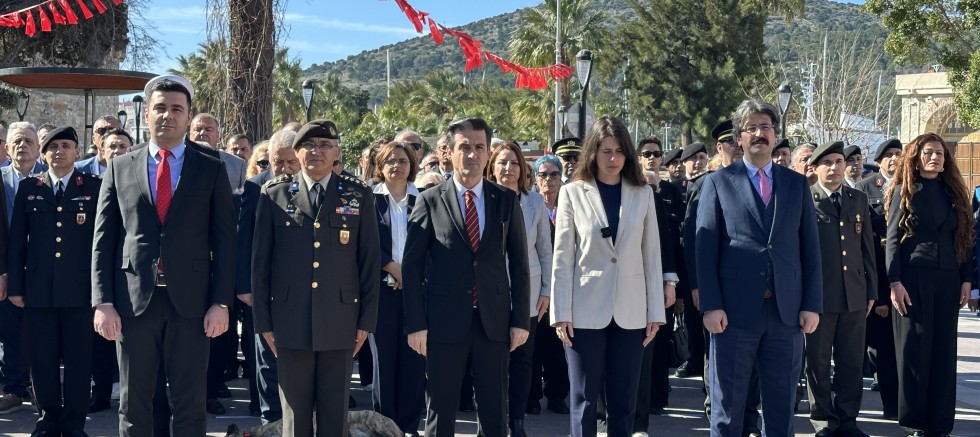 Çeşme Kaymakamı Mehmet Maraşlı, Garnizon Komutanı Albay Erol Dağdeviren ve Çeşme Belediye Başkanı Lâl Denizli tarafından Atatürk Anıtı’na çelenk sunulmasının ardından, saygı duruşunda bulunuldu ve İstiklal Marşı okundu.