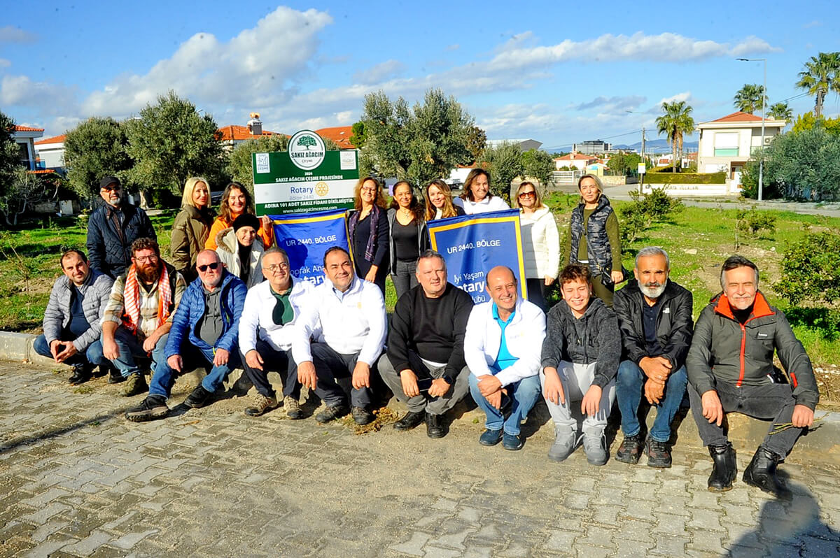 Çeşme Yarımada Çevre Platformu tarafından, bölgenin bugüne kadar gerçekleştirdiği en önemli çevre projelerinden biri olarak değerlendirilen bu girişim, hem çevre bilinci hem de sosyal faydalarıyla dikkat çekiyor.Rotaryenler, etkinlik kapsamında 101 sakız ağacını Çeşme’de toprakla buluşturarak projeye destek verdi. Sakız Ağacım Çeşme Projesi’nin, çevre duyarlılığı ve toplumsal kalkınmaya sağladığı katkılarla gelecek nesillere daha yeşil bir miras bırakmayı hedeflediği belirtildi.