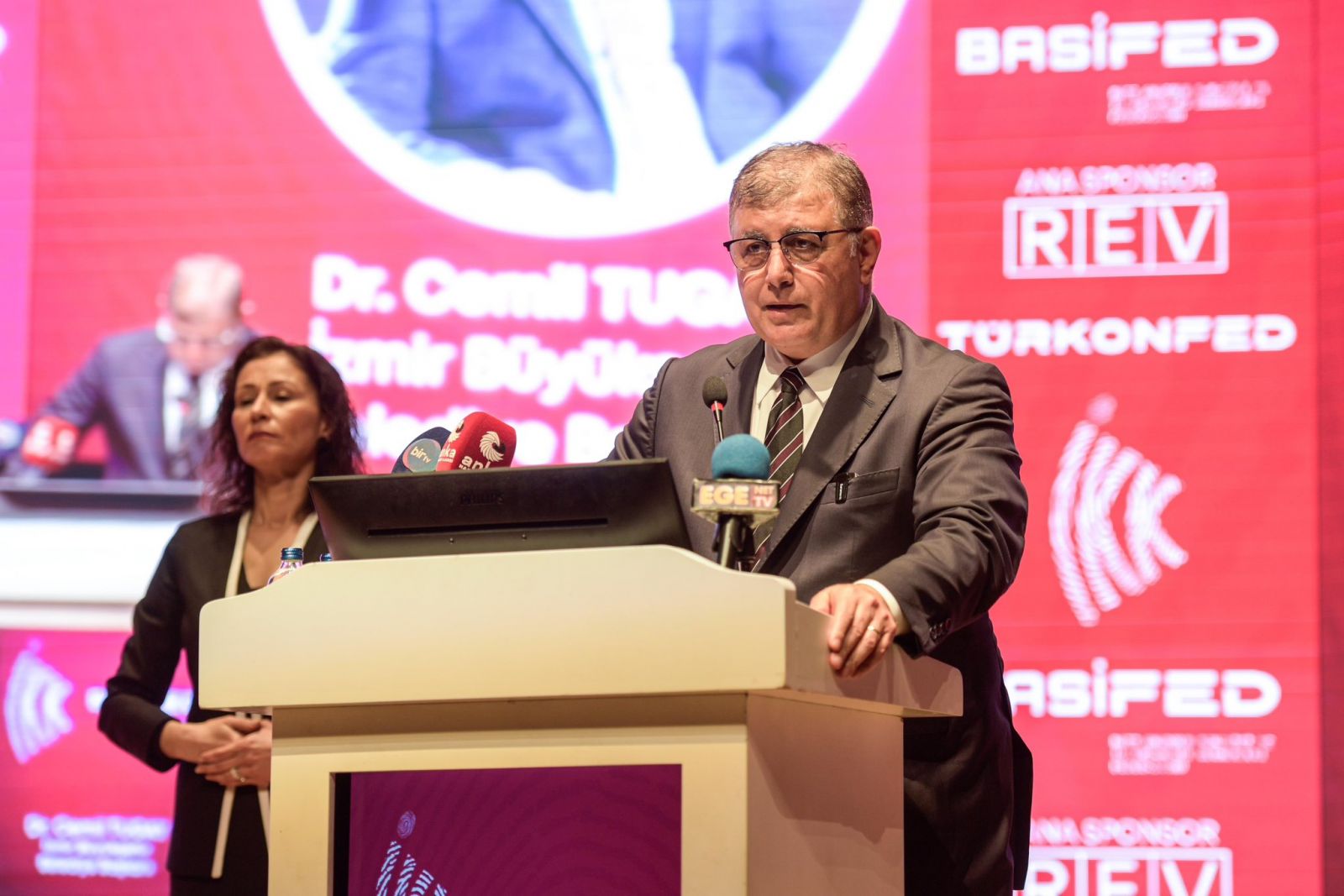 İzmir Büyükşehir Belediye Başkanı Dr. Cemil Tugay ise 1923’te düzenlenen ilk İzmir Kadın Kongresi’ni hatırlatarak, “Mustafa Kemal Atatürk, ‘Savaş alanlarında kazanılmış askeri zaferler ve siyasi başarılar, iktisadi başarılarla taçlandırılmadıkça tamamlanmış olmaz’ demiştir. O büyük deha, İzmir İktisat Kongresi’nden iki hafta önce kadın kongresi düzenleyerek toplumun dikkatini bu konuya çekti. O gün başlayan kadın hareketi, Cumhuriyet’in en önemli sosyal dönüşümlerinden biri oldu. ‘Cumhuriyet bir kadın devrimidir’ denir. Cumhuriyet’in önderi bir erkek olabilir ama mücadelesini verenler kadınlardır” dedi.