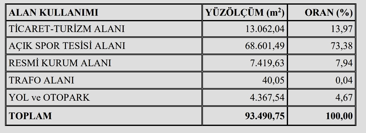 Askıya çıkan imar planına göre hali hazırdaki imar planlarında makilik statüsündeki ve hazine mülkiyetindeki 93 bin 490 metrekarelik alan 'Ticaret - Turizm Alanı (E: 0.60 Yençok: 2 Kat), Açık Spor Tesis Alanı (E: 0.15, Yençok: Projenin gerektirdiği yükseklik), Resmi Kurum Alanı (E: 0.40, Yençok: 2 Kat), Trafo Alanı, Otopark ve Yol' ilan edildi. Planlara 30 gün içinde itiraz edilebilecek.