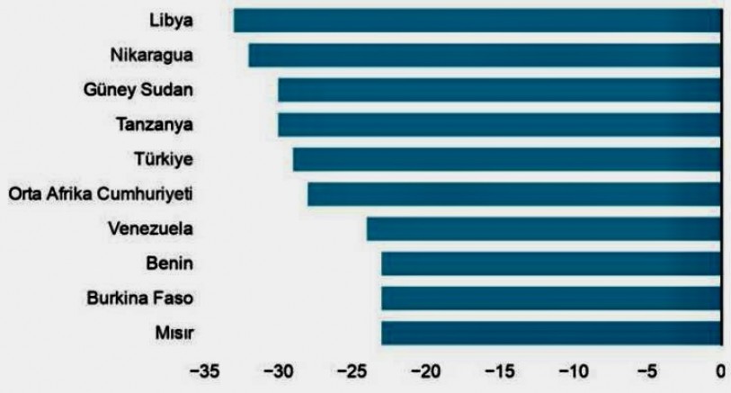 Rapora göre, dünyada özgürlük puanında son 10 yılda en fazla düşüş yaşayan ülke Libya oldu. Libya’yı Nikaragua, Güney Sudan ve Tanzanya izledi.