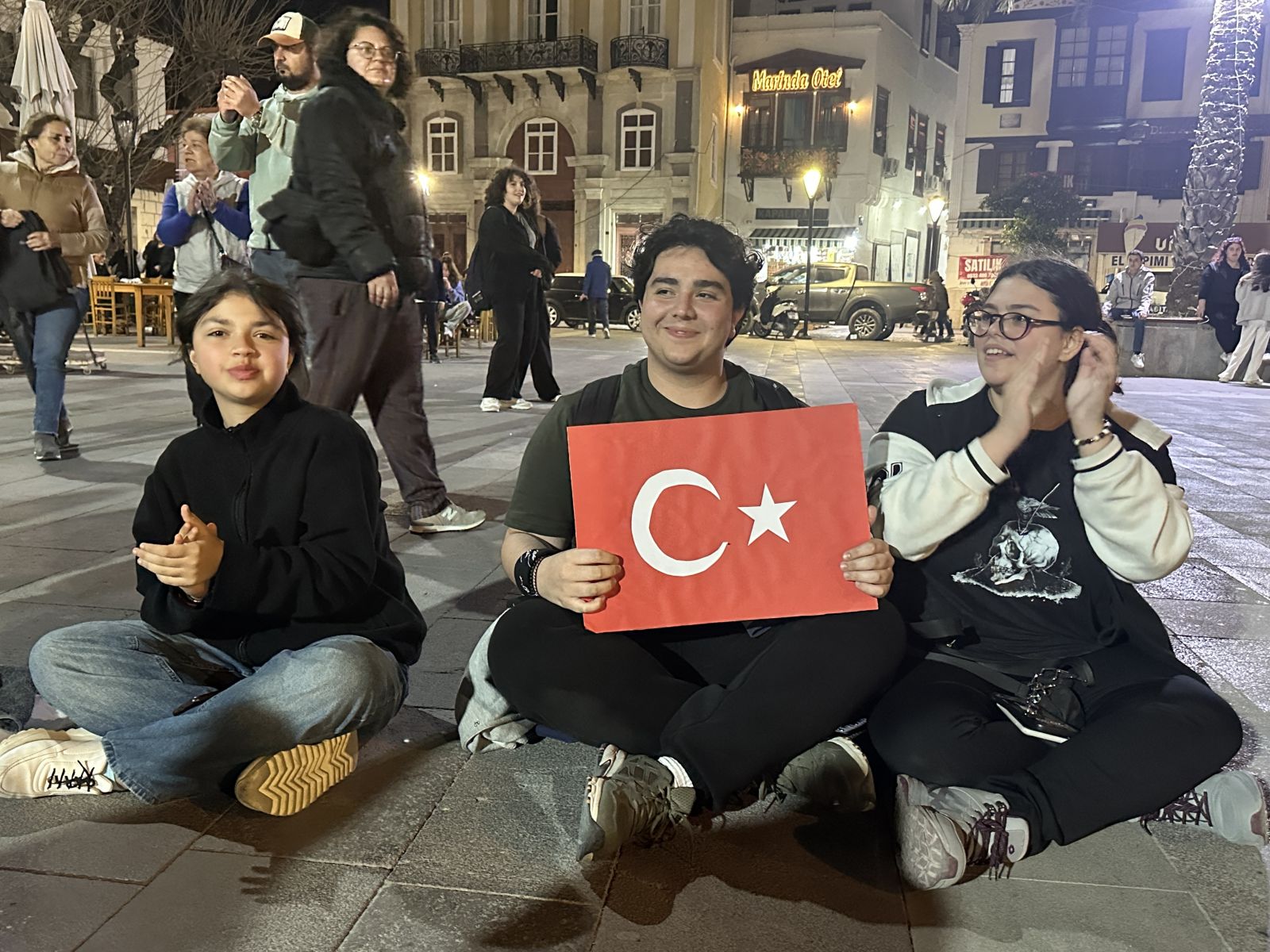Ekrem İmamoğlu ve yol arkadaşlarının tutuklanmasına yönelik tepkiler Çeşme’de devam ediyor. Daha önce düzenlenen tepki yürüyüşlerinin ardından, bu kez oturma eylemi gerçekleştirildi.