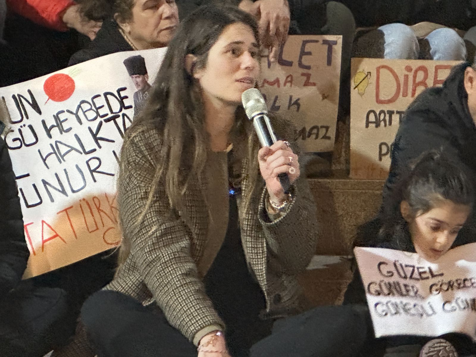Oturma eylemine katılan vatandaşlardan bazıları da söz alarak, neden orada olduklarını anlattı. Konuşmacılar, mücadelenin sadece Ekrem İmamoğlu meselesi olmadığını, ülkenin geleceği, adalet ve demokrasi için bir araya geldiklerini belirtti.