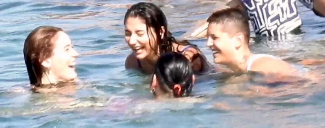 Oldukça neşeli olan oyuncular, denizde sohbet etti. Kendilerini çeken basın mensuplarını fark eden voleybolcular, "Bizi çekiyorlar" diyerek birbirlerine uyarıda bulunurken, bir yandan da zafer işareti yapıp el sallayarak poz verdiler.
