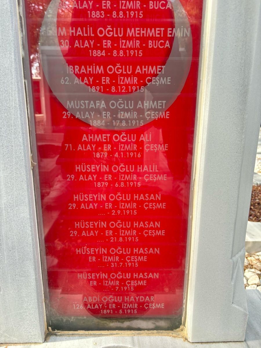 Çanakkale Savaşı’nda destan yazan ve vatanı için can veren Çeşmeli kahramanların isimleri, bu anlamlı proje ile ölümsüzleşecek. Yapılacak şehitlikte, Çanakkale’de şehit düşen Çeşmeli askerlerin isimleri yer alacak: