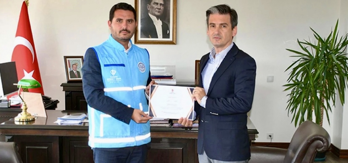 Kaymakam Maraşlı’nın vekaletini Türkiye Diyanet Vakfı adına kabul eden TDV Çeşme Şubesi Başkanı ve İlçe Müftüsü Murat Yılmaz, desteklerinden dolayı Maraşlı’ya teşekkür ederek bağış makbuzunu takdim etti.