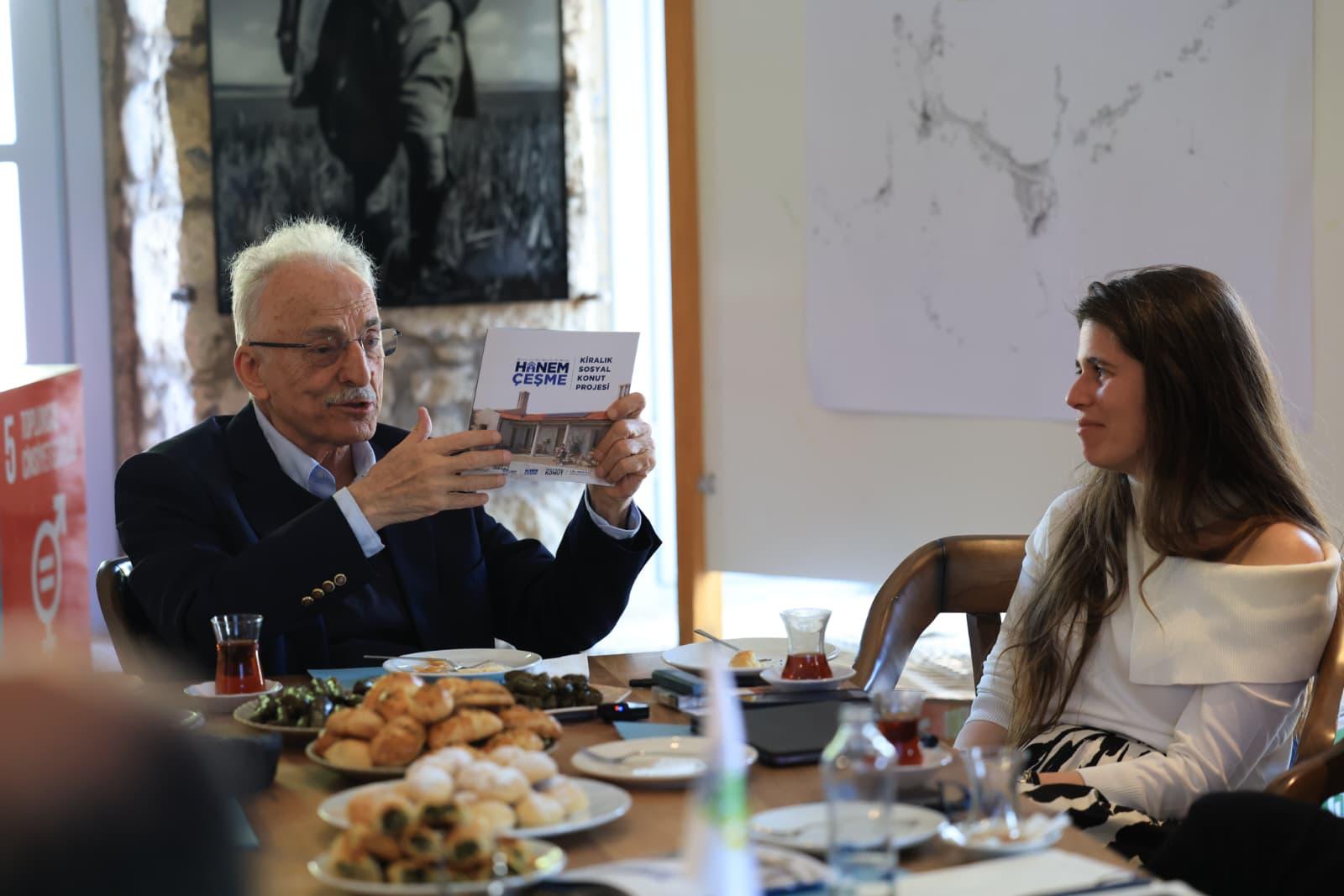 Çeşme Belediyesi’nin kiralık sosyal konut projesi “Hanem Çeşme”, CHP milletvekillerine tanıtıldı. Belediye Başkanı Lal Denizli’nin ev sahipliğinde gerçekleştirilen toplantıya, projenin mentörlüğünü üstlenen eski CHP Genel Başkanı Murat Karayalçın ile CHP İzmir Milletvekilleri Deniz Yücel, Murat Bakan, Tuncay Özkan ve Ednan Arslan katıldı.
