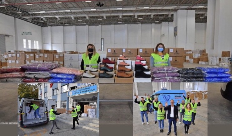 İzmir Büyükşehir Belediyesi kent genelinde 600 okulda öğrenim gören 25 bin öğrenciye bot ve mont dağıtımına başladı. Destek miktarı 2019 yılından bu yana 25 milyon lirayı aştı.