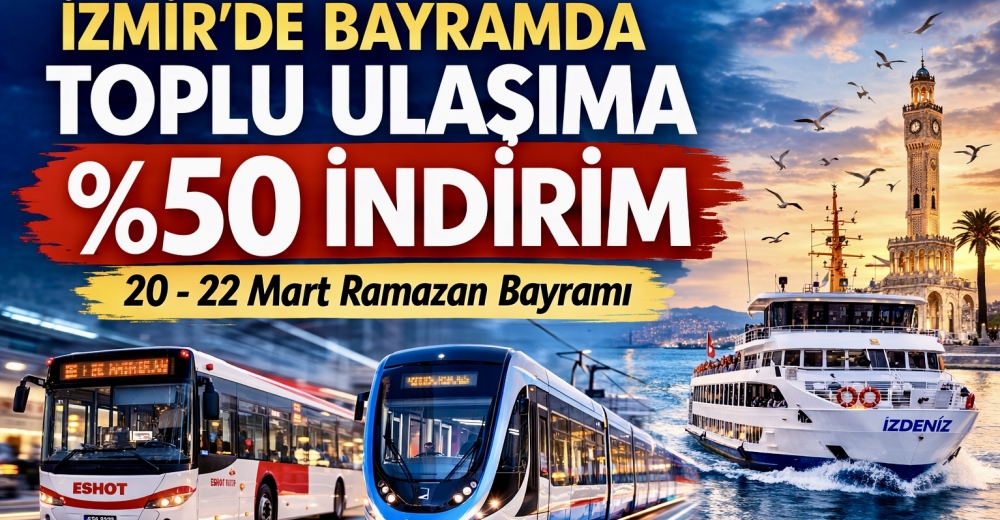 İzmir Büyükşehir Belediyesi, Ramazan Bayramı süresince kentte toplu ulaşımı teşvik etmek amacıyla önemli bir düzenlemeyi gündemine aldı. Belediye meclisine sunulan önergeye göre, 20–22 Mart 2026 tarihleri arasında İzmir’de toplu ulaşım araçlarında yüzde 50 indirim uygulanması planlanıyor.