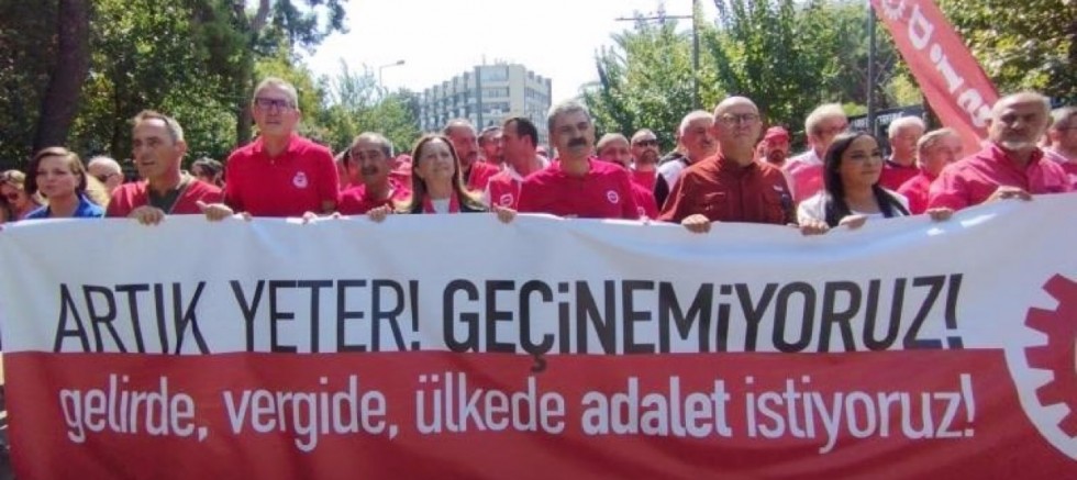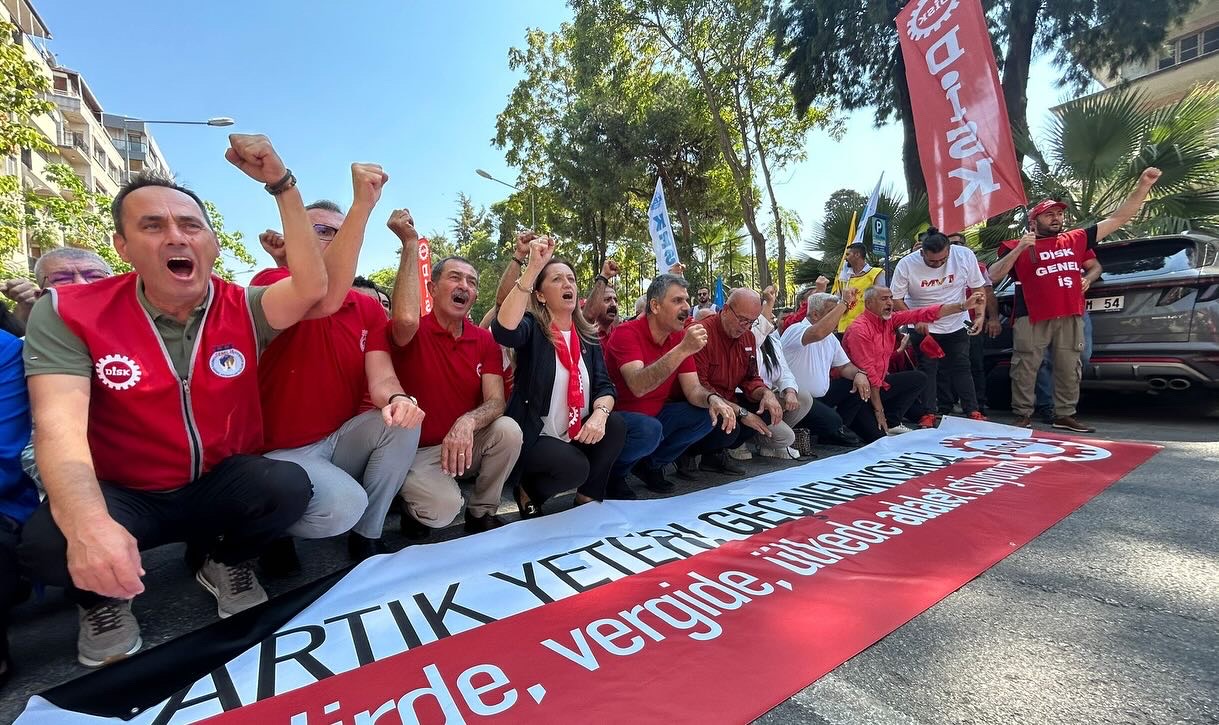 “Bu yüksek enflasyon karşısında evine ekmek götüremeyenler, çocuğunu okula göndermeyenler, gönderse de beslenme çantasına bir lokma ekmek koymakta zorlayanlar olarak bir aradayız. İşsizlikle geleceği karartılan gençlerimi, için bir aradayız. Belediyelerde şirket işçisi olarak çalıştırılır hakları gasp edilmeye çalışanlar olarak bir aradayız. Bu düzeni değiştirmek isteyen herkes olarak yan yanayız. Bu meydanı görsünler. Görmeyen gözler, duymayan kulaklar bu meydanı görsün. Ankara’da oturan, saraylarda oturan, her gün ekmeğimize göz dikenler, bu meydanı görsün. Hepimiz biliyoruz, bu yaşadığımız tablo tesadüf değil. Bu hayat pahalılığının nedeni 22 yıldır ülkeyi yöneten AKP’nin tercihidir. Öyle beceriksizlik falan değil, sık sık değiştirdiler maliye bakanlarının bürokrasinin beceriksizliği değil, bile isteye yapıyorlar. O nedenle DİSK olarak yıllardır alanlardayız. İki yılı aşkın süredir, gelirde, vergide, ülkede adalet diyoruz. Bizi açlığa mahkum eden, milyonları asgari ücrete mahkum eden politikaları değiştirmek için mücadele ediyoruz. Kaşıkla verdiklerini kepçeyle geri alan adaletsiz vergi sistemini değiştirmek için mücadele ediyoruz. Yani az kazanandan az, çok kazanandan çok alınan adil bir vergi sistemi istiyoruz
