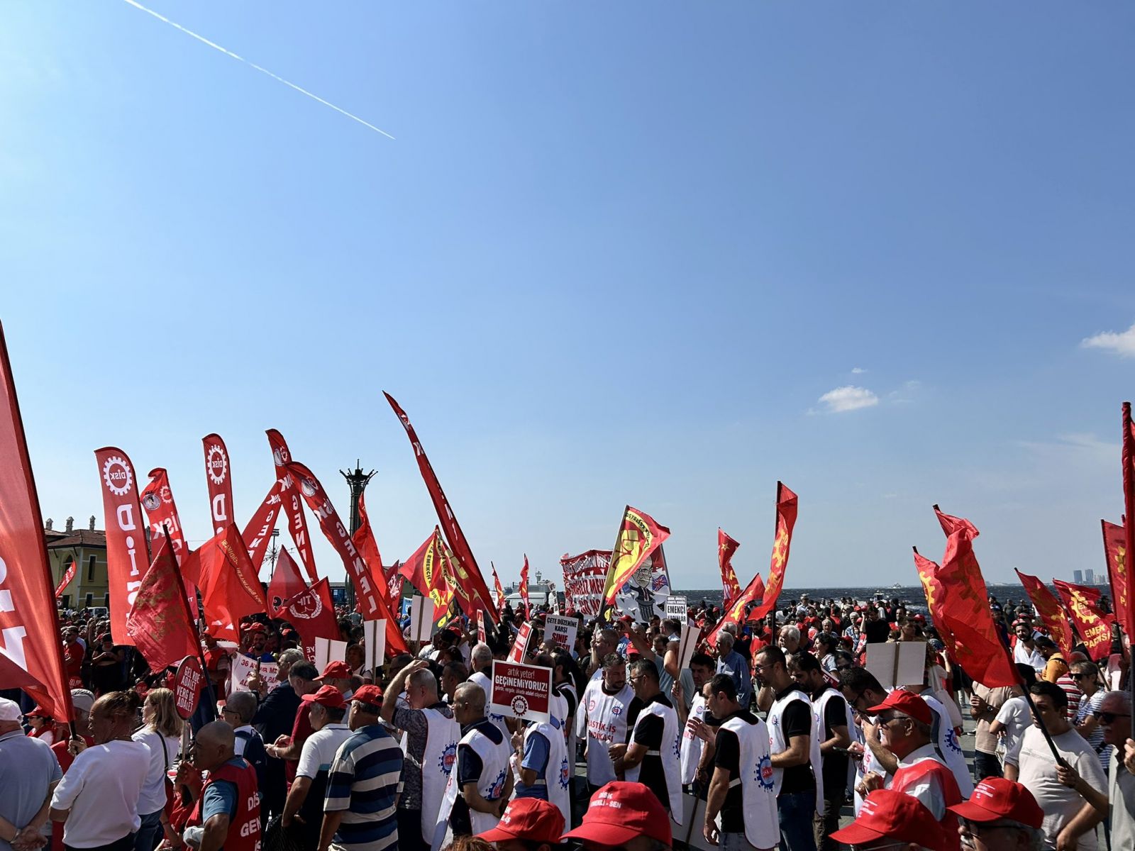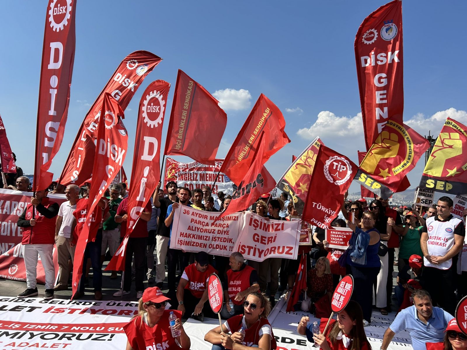 Türkiye Devrimci İşçi Sendikaları Konfederasyonu (DİSK), İzmir Cumhuriyet Meydanı’nda Ege İşçi Buluşması gerçekleştirdi. DİSK Ege Bölge temsilciği tarafından düzenlenen eyleme DİSK Genel Başkanı Arzu Çerkezoğlu, arabağlar Belediye Başkanı Helil Kınay ve Konak Belediye Başkanı Nilüfer Çınarlı Mutlu, işçiler ve basın mensupları katıldı.