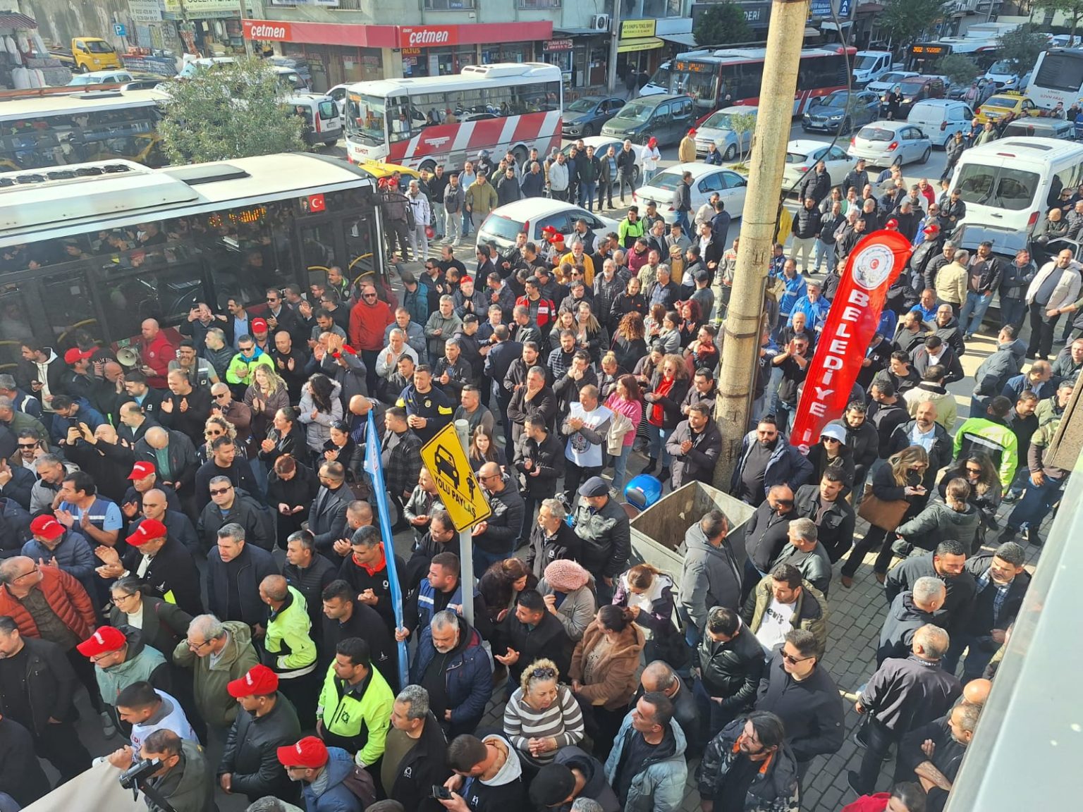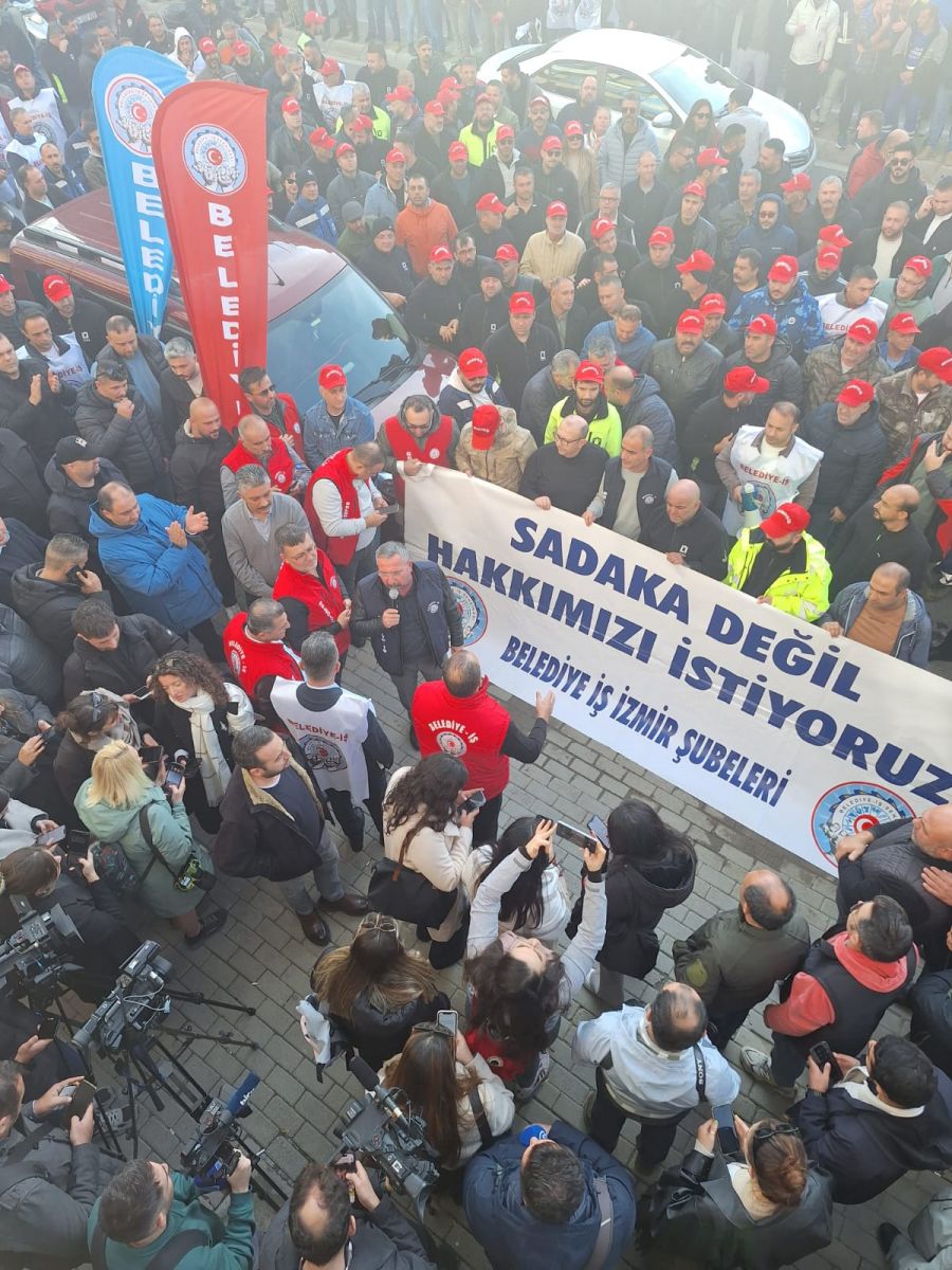 İzmir Büyükşehir Belediyesi’ne bağlı şirketlerde yaşanan ödeme krizi büyüyor. Belediye-İş’e bağlı üç şube, İzmir Şubeleri Hizmet Binası önünde düzenlenen açıklamayla maaşların eksik yatırılmasına tepki gösterdi. Eylemde “Direne direne kazanacağız” ve “Bu daha başlangıç, mücadeleye devam” sloganları atıldı.