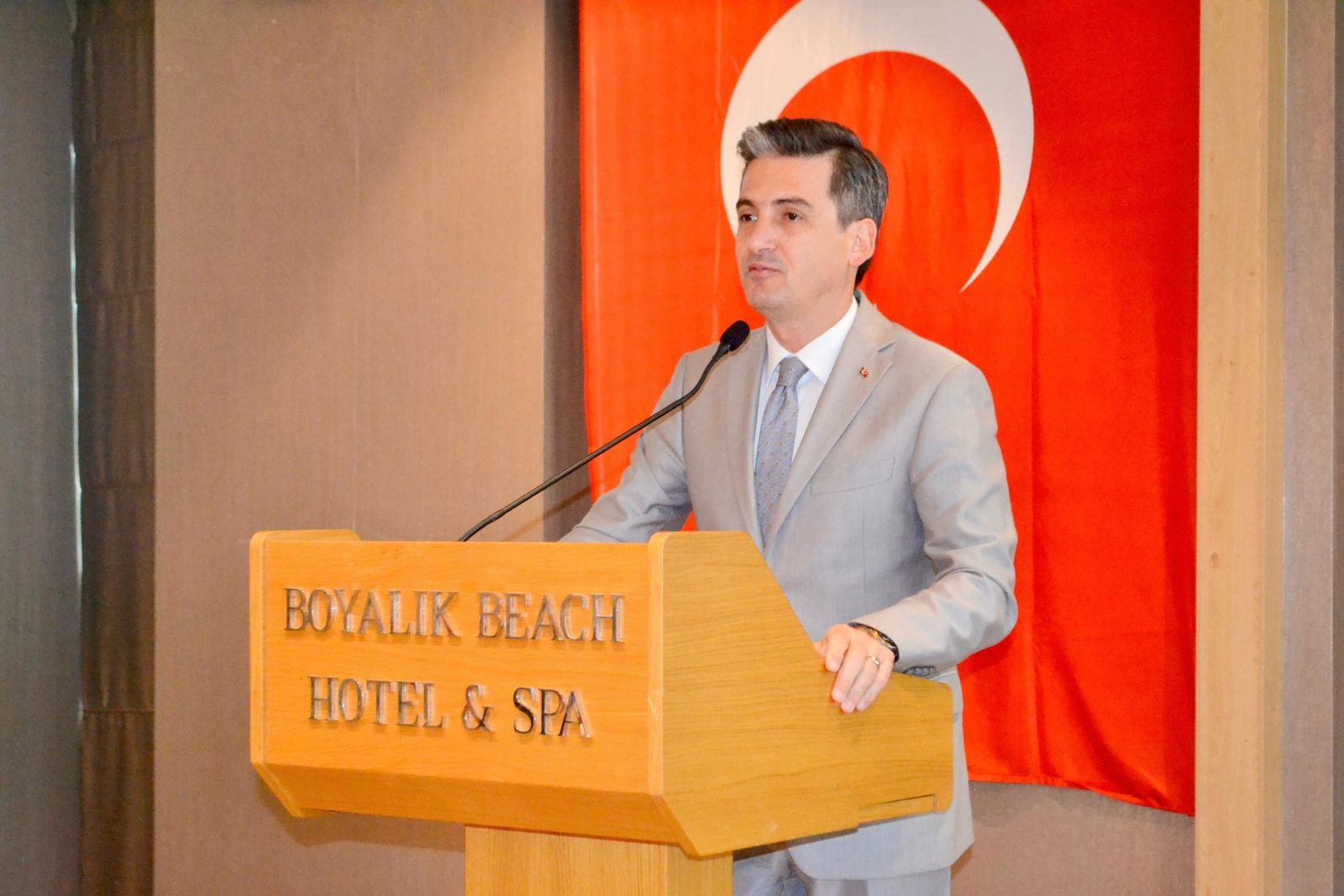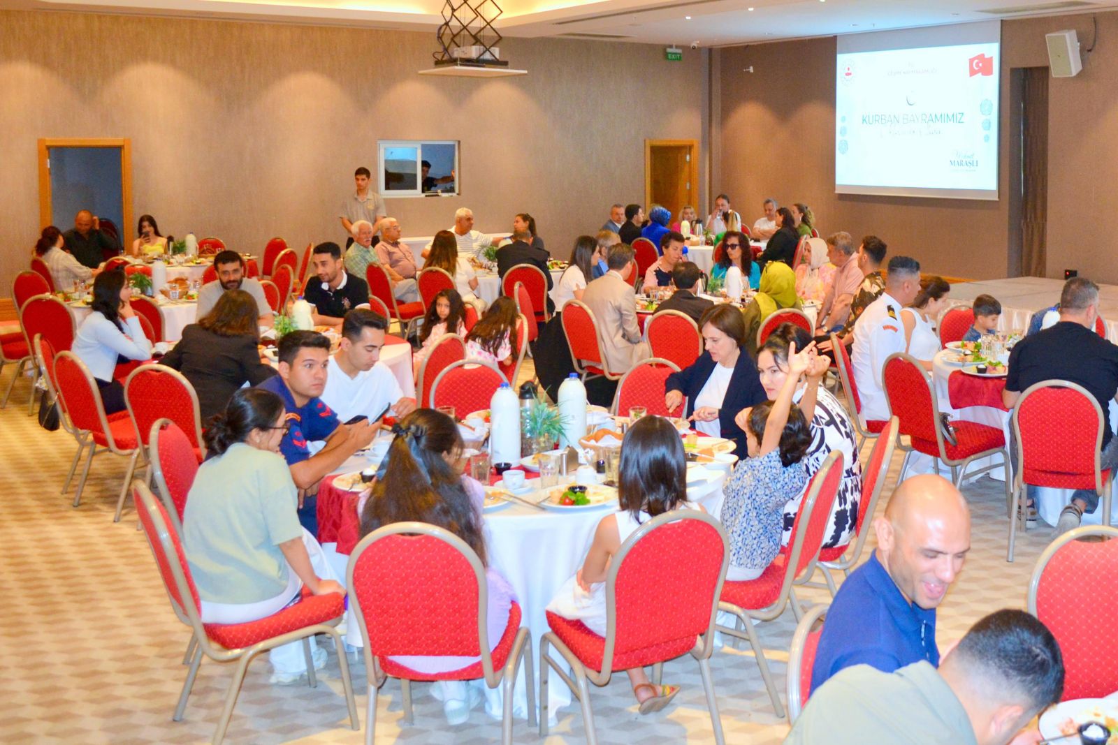 Turizm sezonunun yoğunlaşmaya başladığı bu dönemde kamu kurumları ve özel sektör çalışanlarının sorumluluklarının arttığını vurgulayan Kaymakam Maraşlı, “Bu mübarek bayram gününde sizlerle birlikte olmaktan büyük mutluluk duyuyorum. Davetimize icabet ettiğiniz için teşekkür ediyorum” şeklinde konuştu.