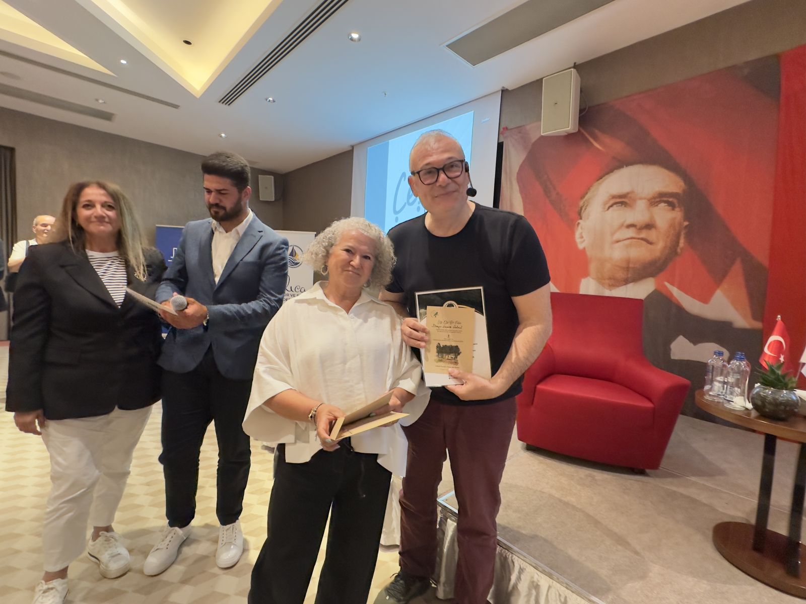 Söyleşinin sonunda Çeşme Belediye Başkanı Lâl Denizli, Levent Üzümcü’ye sakız ağacı fidanı hediye etti. Ilıca Kültür ve Sanat Derneği Başkanı Gülnaz Ertan ise Üzümcü adına bağışlanmış bir sakız fidanının sertifikasını sundu.
