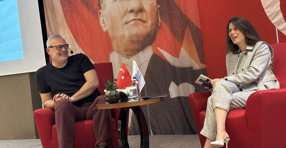 “Sanat ve Hayata Dair Dolu Dolu Bir Sohbet” başlığıyla düzenlenen söyleşinin moderatörlüğünü Çeşme Belediye Başkanı Lâl Denizli üstlenirken, Levent Üzümcü sanat, yaşam, kültürel üretim ve toplumsal sorumluluk üzerine çarpıcı değerlendirmelerde bulundu.