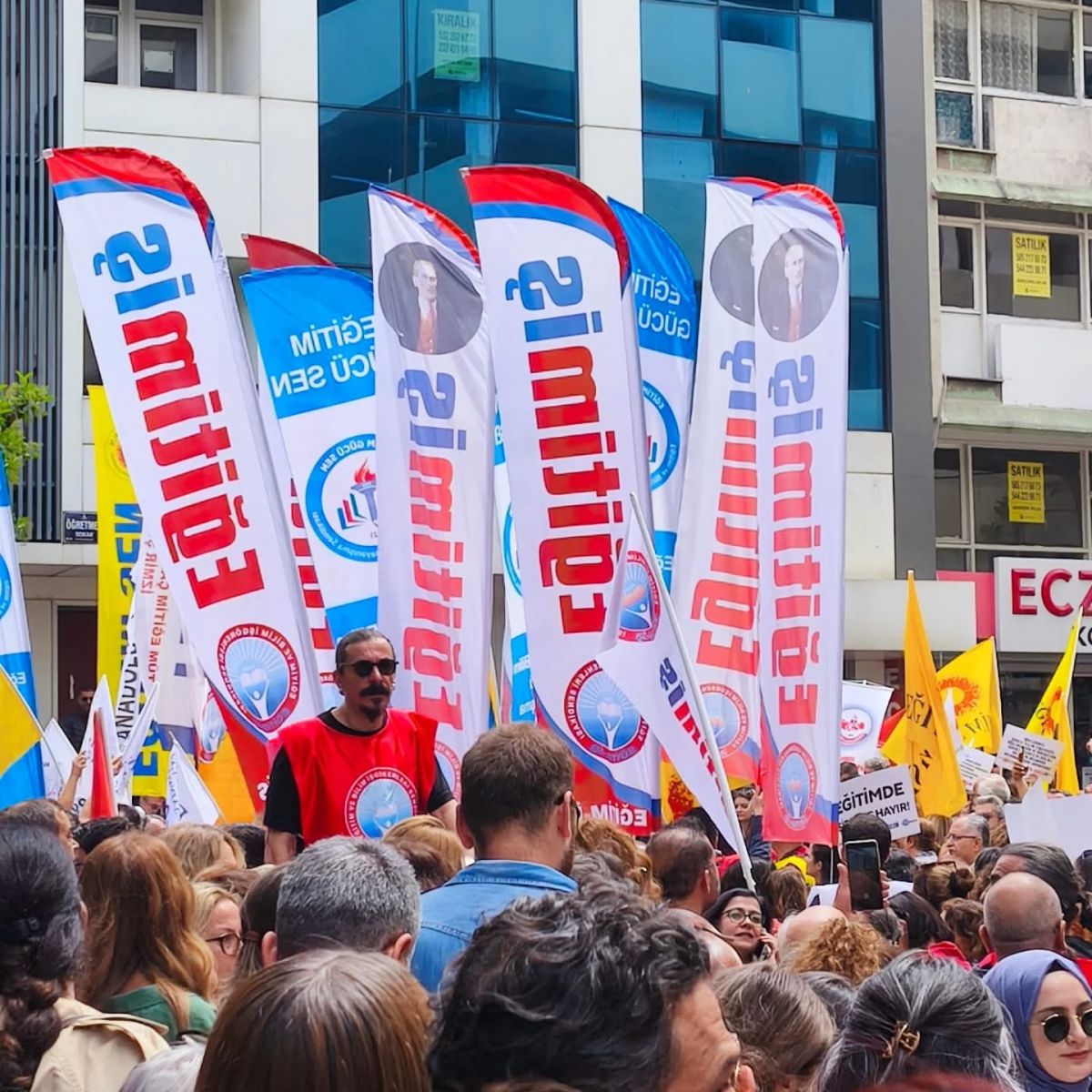 Eğitimciler, sloganlar eşliğinde Konak’tan İl Milli Eğitim Müdürlüğü önüne yürüdü. “Hak, hukuk, adalet”, “Yusuf Tekin istifa” sloganlarının atıldığı yürüyüşte öğretmenler, hem çalışma koşullarını hem de eğitim sistemine yönelik eleştirilerini dile getirdi.